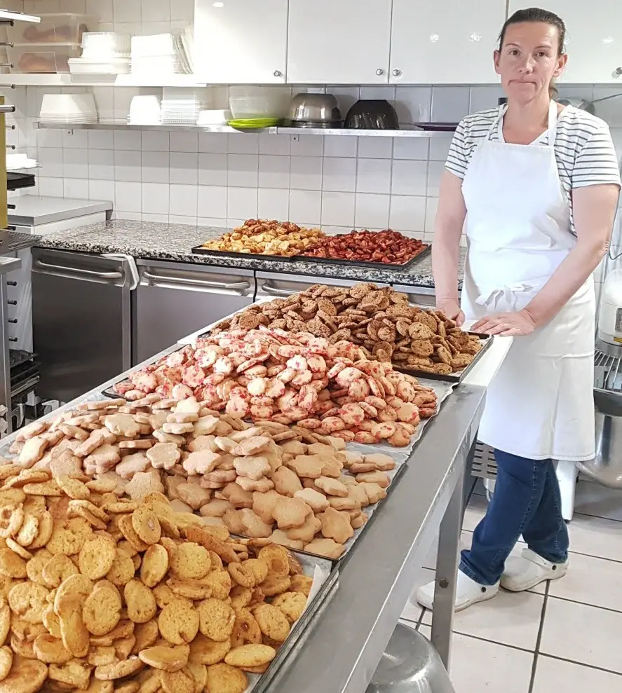 Herstellung von Keksen, Zwieback und Gebäck. Auf dem Markt von Montbrison am Samstagmorgen und auf den lokalen Weihnachtsmärkten.