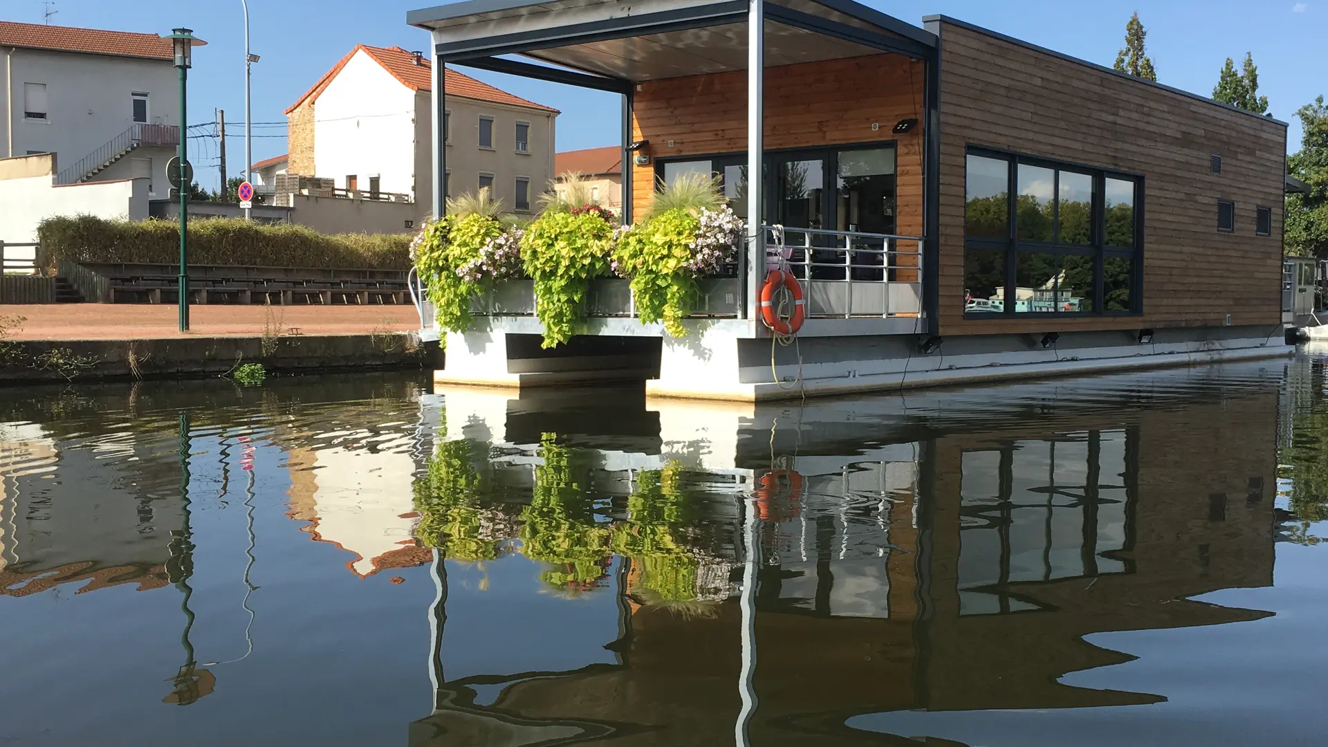 Restaurant flottant sur le port de Roanne, un cadre unique, une cuisine raffinée, une ambiance feutrée.