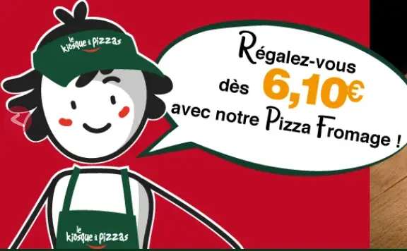 Offre découverte : 1 pizza gratuite en vous inscrivant sur www.lekiosqueapizzas.com (suite à votre inscription, vous recevrez par mail un bon pour une pizza achetée = 1 pizza offerte).