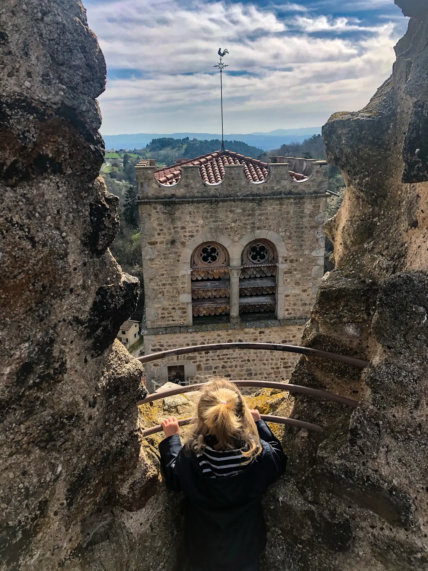 Marches de la tour d’ Ecotay-l'Olme à monter.