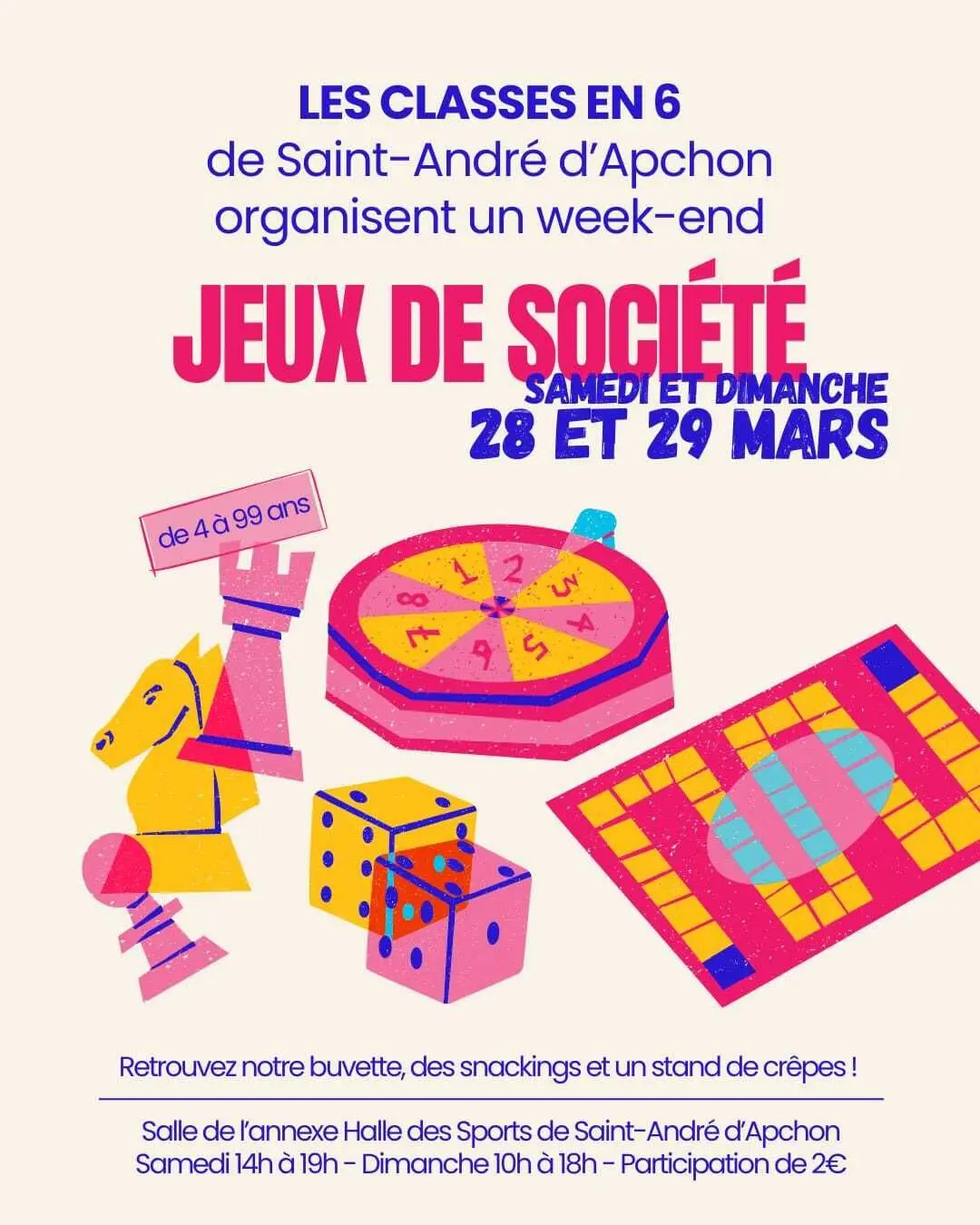 Retrouvez notre buvette, des snackings et un stand de crêpes.