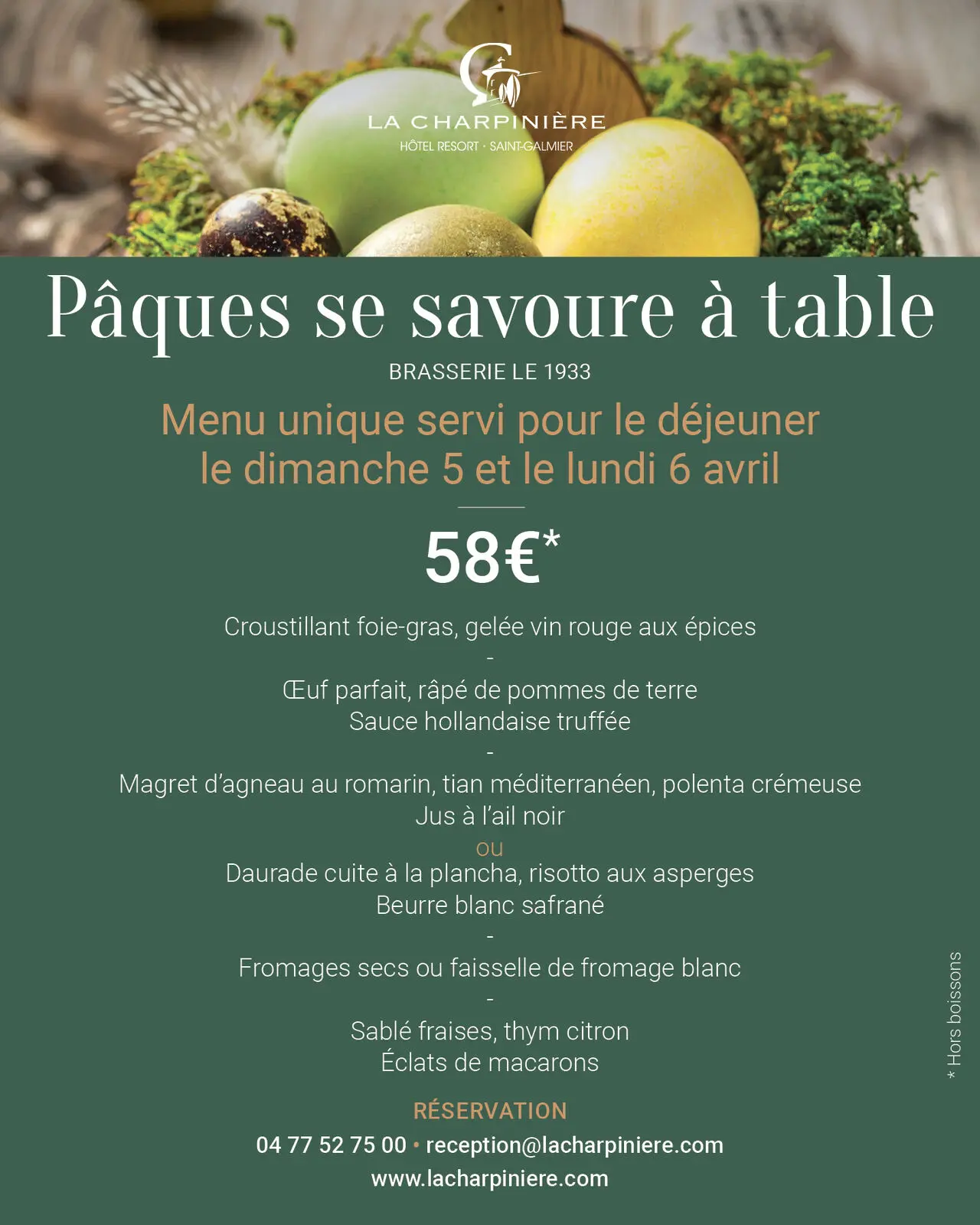 La Brasserie Le 1933, autour d’un menu de Pâques : entrée, plat, fromage et dessert.