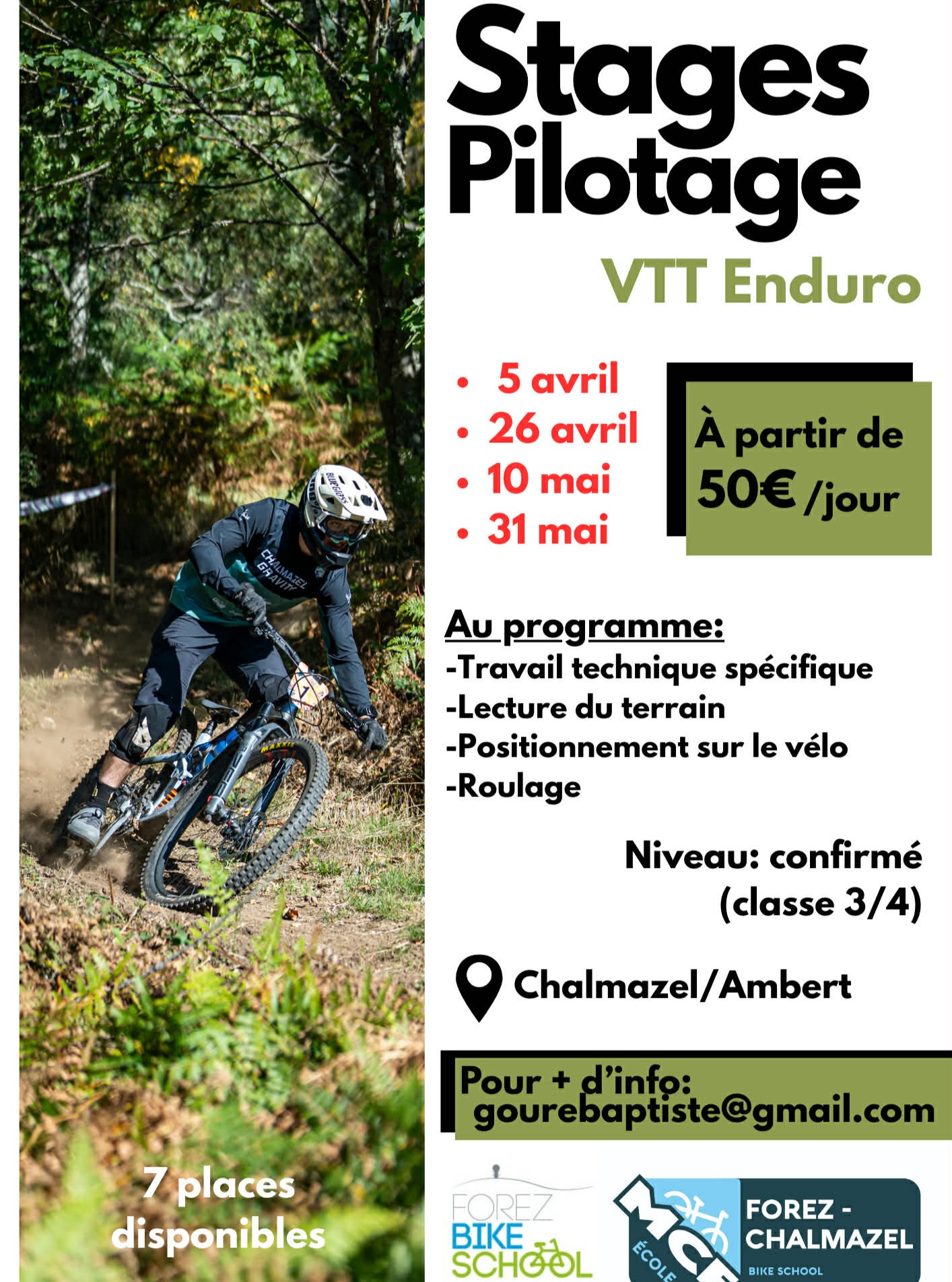 Au programme : travail technique spécifique, lecture du terrain, positionnement sur le vélo, roulage.