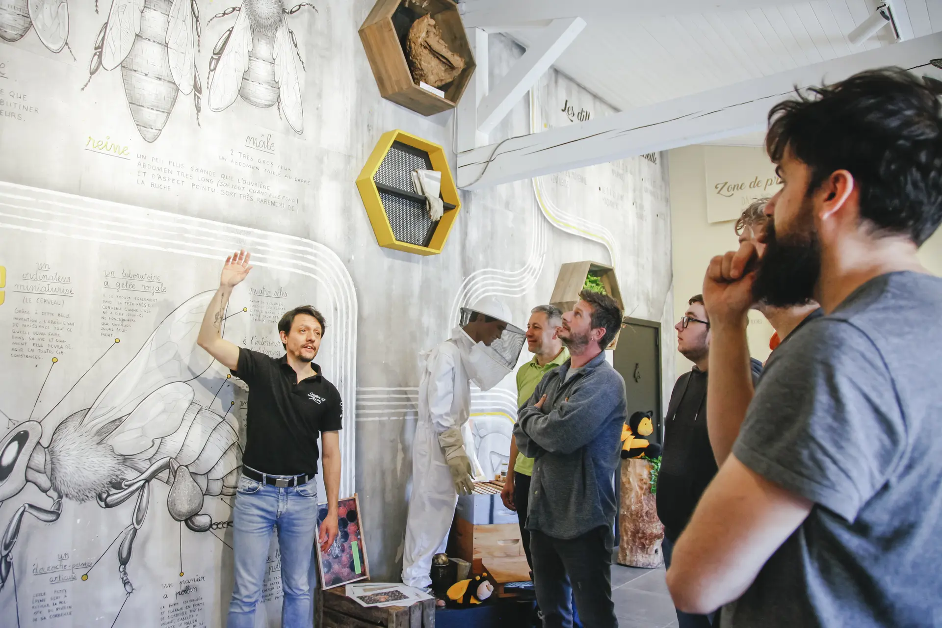 Au cours de la visite vous assisterez à l'ouverture d'une ruche en activité par l'apiculteur (de Mars à Octobre uniquement), vous pourrez ainsi observer les abeilles en toute sécurité derrière une structure vitrée.