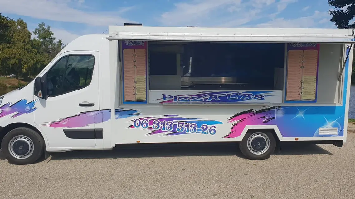 Pizza-Lastwagen, der in der Ortschaft parkt.
