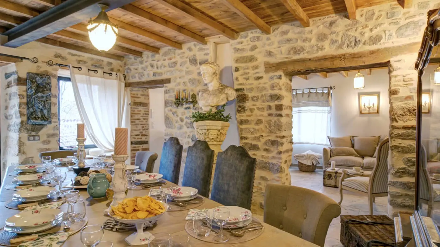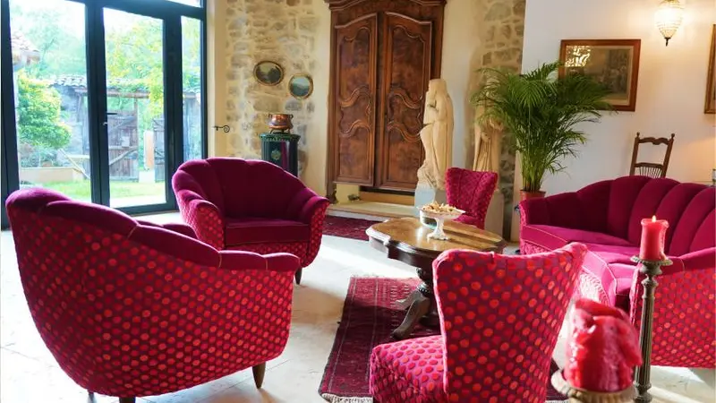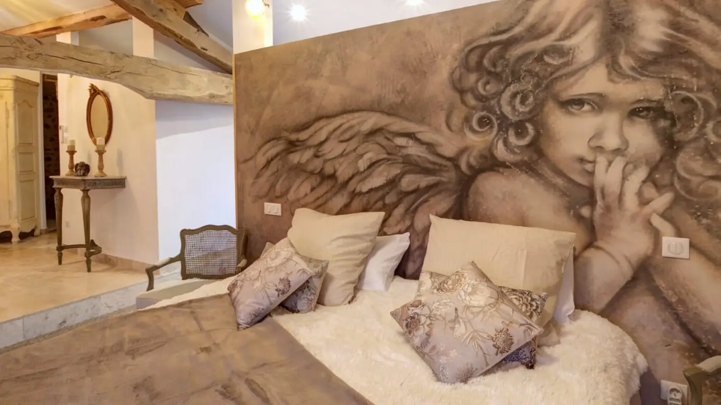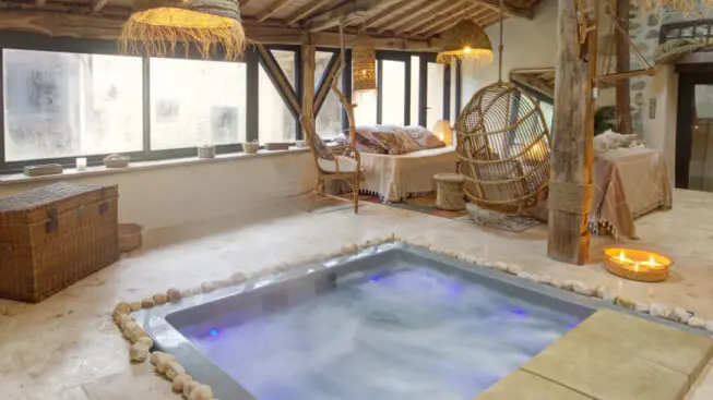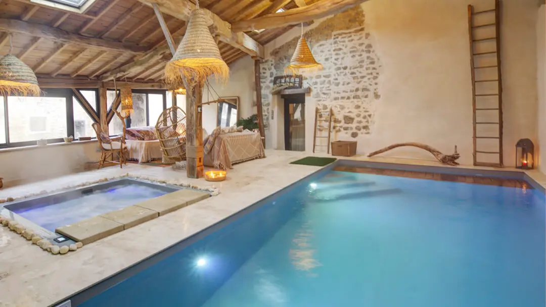Gîte von 140m² im Erdgeschoss + Obergeschoss. Auf der 1. Ebene finden wir die Wohnzimmer mit integrierter Küche, die Ruhe- und TV-Lounges. Ein großes Badezimmer ist ausgestattet: italienische Dusche mit größeren Abmessungen, Waschbecken und WC. Im Obergeschoss entdecken wir die drei schönen Schlafzimmer: Fragonnard: ein 180-cm-Bett – Opaline: ein 160-cm-Bett – Pivoine: ein 180-cm-Bett. Auf derselben Ebene finden wir ein Badezimmer: Badewanne, Waschbecken und WC. Um Ihren Aufenthalt noch gemütlicher zu gestalten: Nebenkosten und Heizung sind im Preis inbegriffen, die Betten sind bei Ihrer Ankunft bezogen und Handtücher stehen zur Verfügung! Die „Medici-Landschaft“ liegt friedlich eingebettet in einem friedlichen Weiler, umgeben von idyllischen und erholsamen Landschaften. Die Eigentümer, die sich für Dekoration und alte Möbel begeistern, öffnen Ihnen die Türen dieser charmanten Unterkunft, die eine Atmosphäre der alten Welt, Modernität und großen Komfort vereint. Ruhe, Gelassenheit, Gelassenheit und die Süße des Lebens sind die Schlüsselwörter, die diese idyllische Oase des Friedens definieren. Diese sorgfältige Restaurierung des Kulturerbes wird durch die sanfte Mischung aus Wasser, Holz, Stein und edlen Materialien noch verstärkt. Die gemütliche & ultragemütliche Atmosphäre erstreckt sich bis in die 90 m² großen Wellnessbereiche mit beheiztem Innenpool, Spa, Bohemian-Lounge und einer in den Fels eingebauten Sauna, die Sie verführen und vom Alltag abschalten werden! Das Ferienhaus verfügt über ein schönes, eingezäuntes Grundstück von 250 m², perfekt angelegt, einschließlich eines Gartens und einer Terrasse.