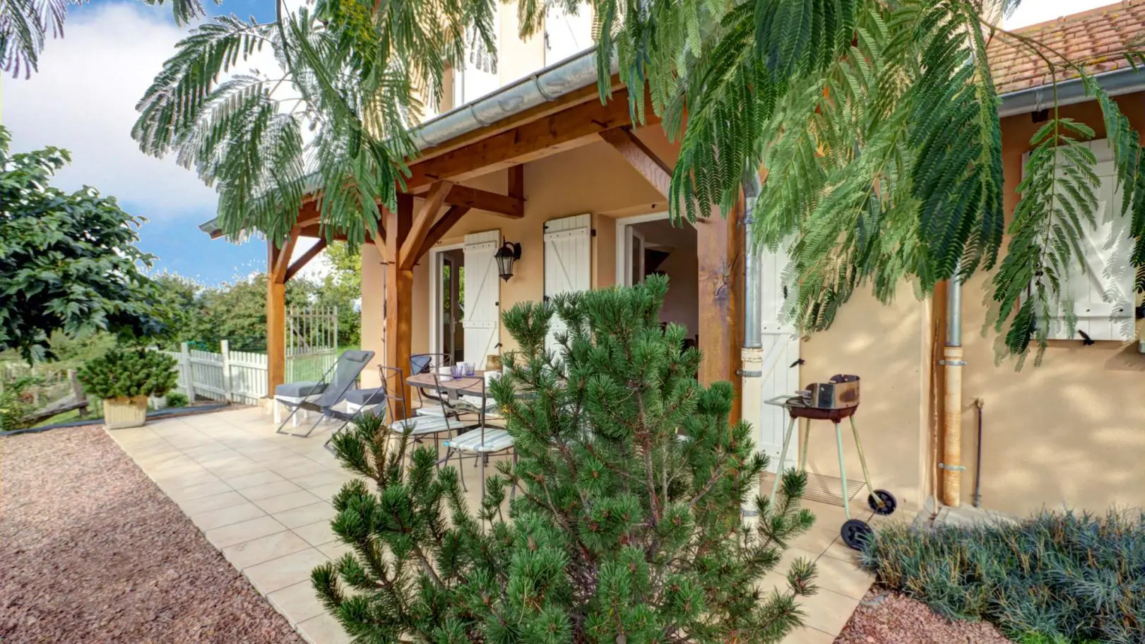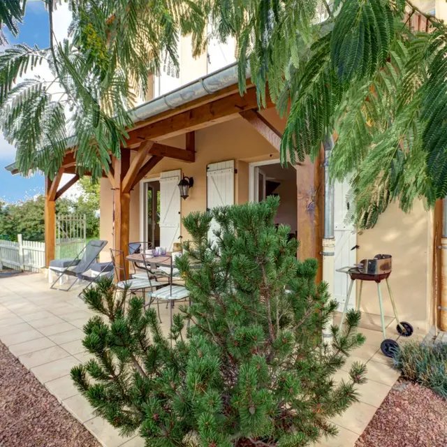 Schätzen Sie den Komfort und die Qualität der Unterkunft: Möbel, Dekoration ..., das Äußere mit einem privaten Grundstück von 500 m², die überdachte Südterrasse von 21 m² und den Blick auf die Küste von Roannaise.