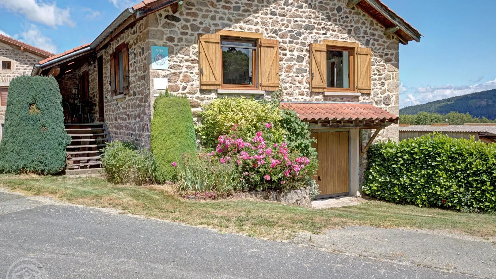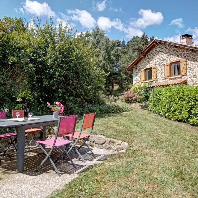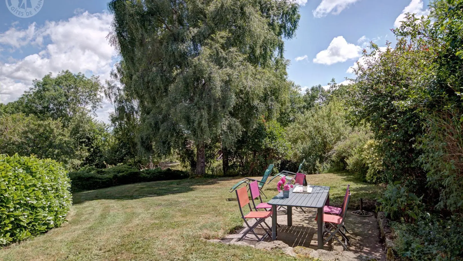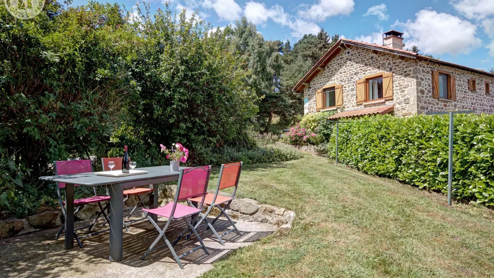 Freistehendes Natursteinhaus auf baumbestandenen und begrüntem Gelände von 300m², Balkon 10m², angelegter Fischteich in einem Kilometer. Zur Ankunft Verkostung der lokalen Produkte.