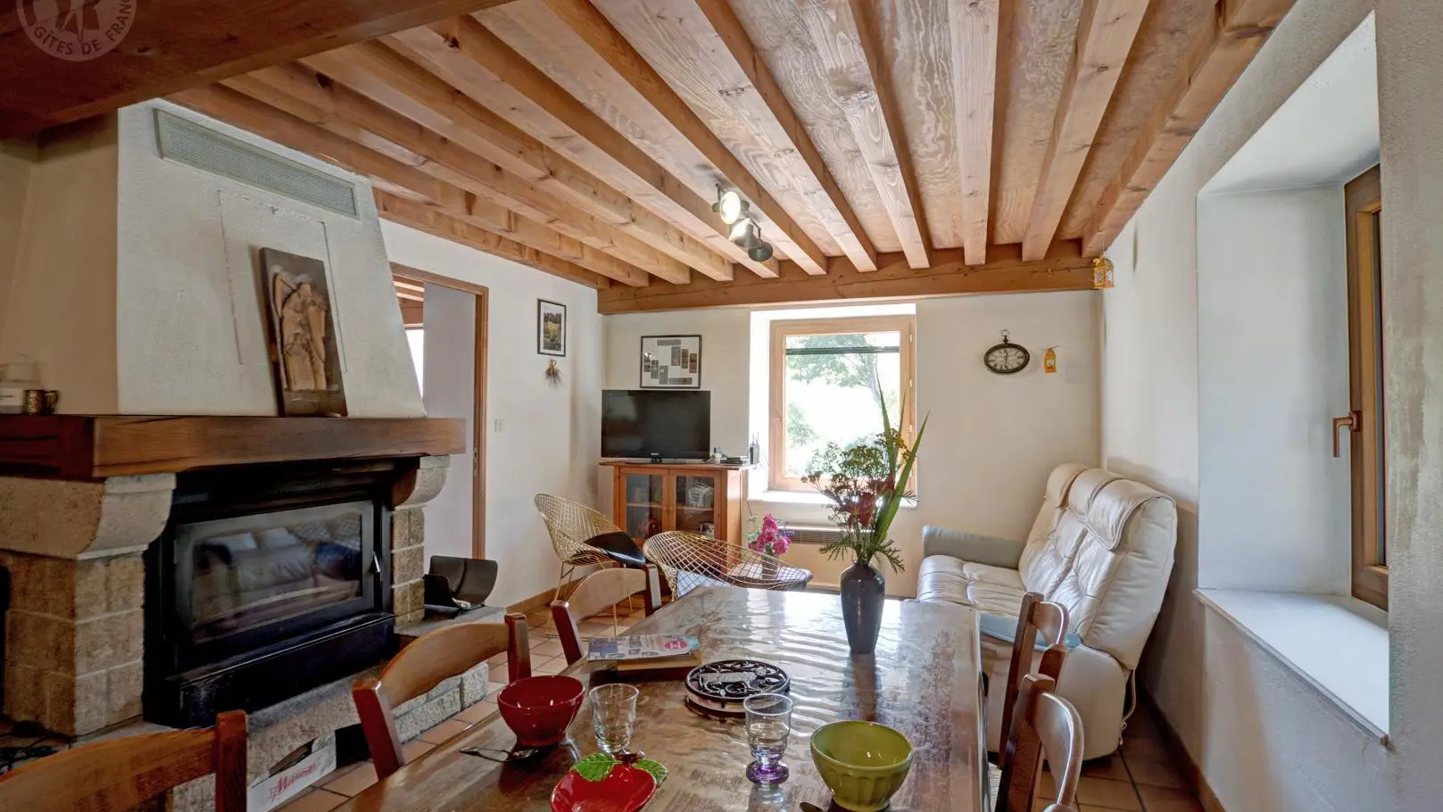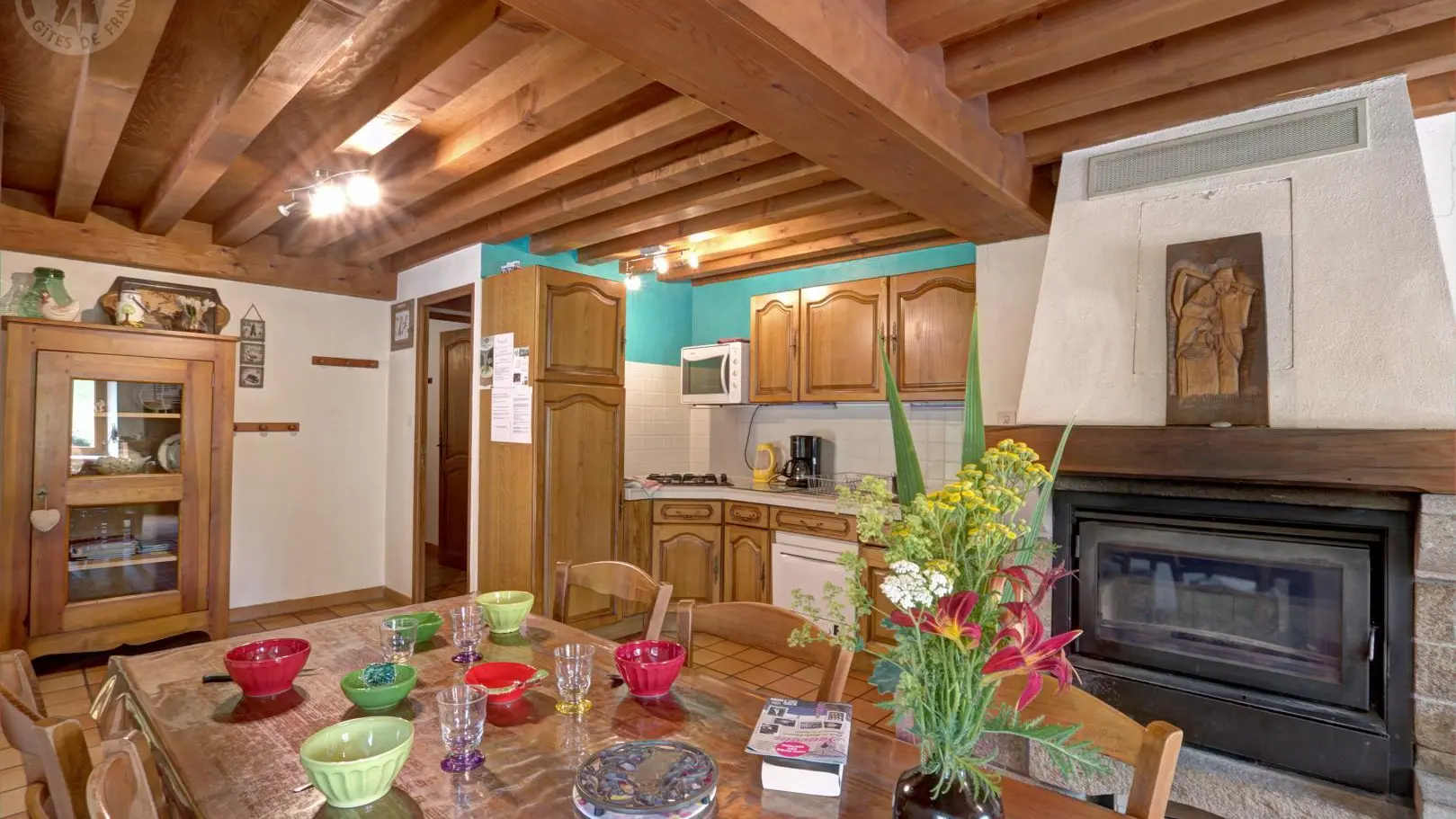 Gîte von 75 m ² Erdgeschoss ausgelöst, Wohnzimmer mit Kochnische, 3 Schlafzimmer (Kinderbetreuung auf Anfrage). Elektroheizung, Kamin mit Wärmerückgewinnung. Sackgasse vor der Hütte.
