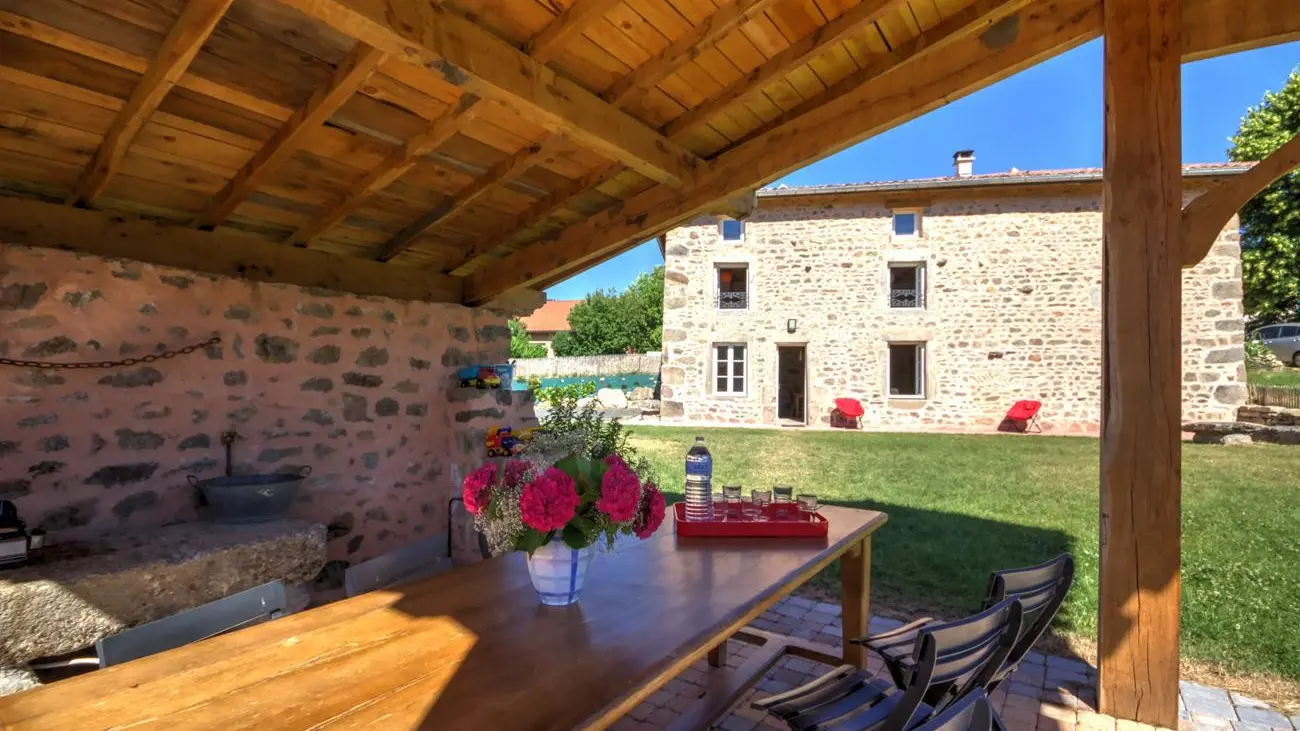 Im Herzen des Monts du Forez, in einem kleinen Dorf des durchschnittlichen Berges warme Hütte untergebracht in einem schönen Steinhaus, sans Vis à Vis mit freiem Blick auf die grüne Landschaft. Besitzer den Stempel des Hauses (steinerne Wände, Boden und Decke Holz, monumentalen Kamin...) behalten wollte alles kombiniert eine moderne und saubere Einrichtung für eine gemütliche Atmosphäre. Genießen Sie in Familie oder unter Freunden, je nach Jahreszeit die Abende durch das Feuer oder das Abendessen im Freien mit Grill in einem überdachten Unterstand-Raum. Privates Grundstück von 400 m ² mit verschiedenen Ruhebereichen, die Natur zu betrachten. Dorf eingebettet in 850 m Höhe zwischen schwarz Wald und grünen Wiesen, wo die Vielfalt der Fauna und Flora Naturliebhaber befriedigen. Viele outdoor-Aktivitäten als Winter und Lage nahe dem Bahnhof Chalmazel und Raum der oberen nordischen ski Drill.
