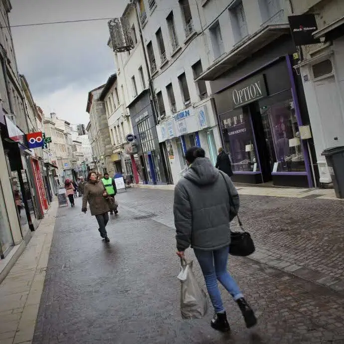 Eigentümer begleitet Sie bei der Besichtigung. Die Rue de la République ist die Hauptgeschäftsstraße von Saint-Chamond.