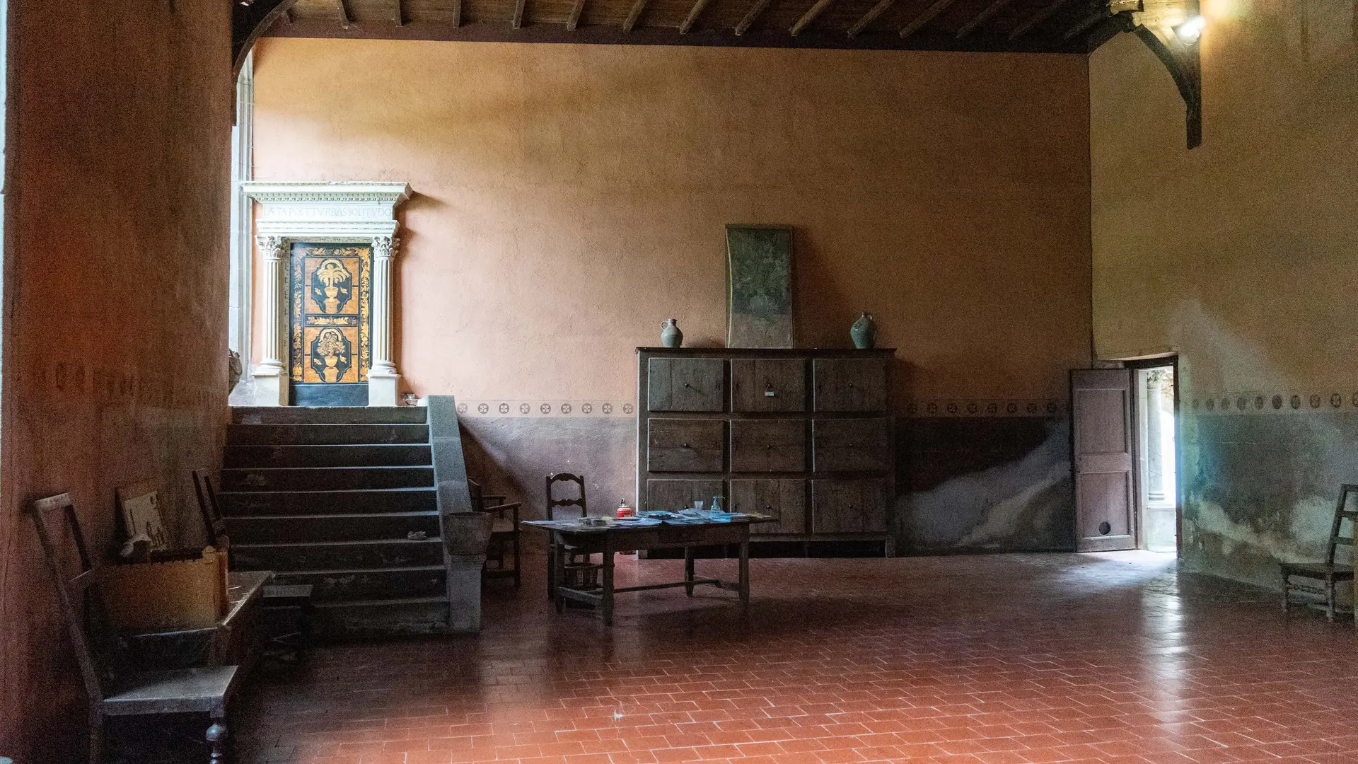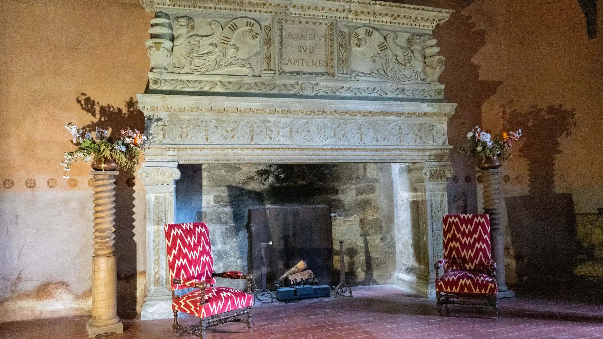 "Magna Camera" genannt, mit einem eindrucksvollen Kamin