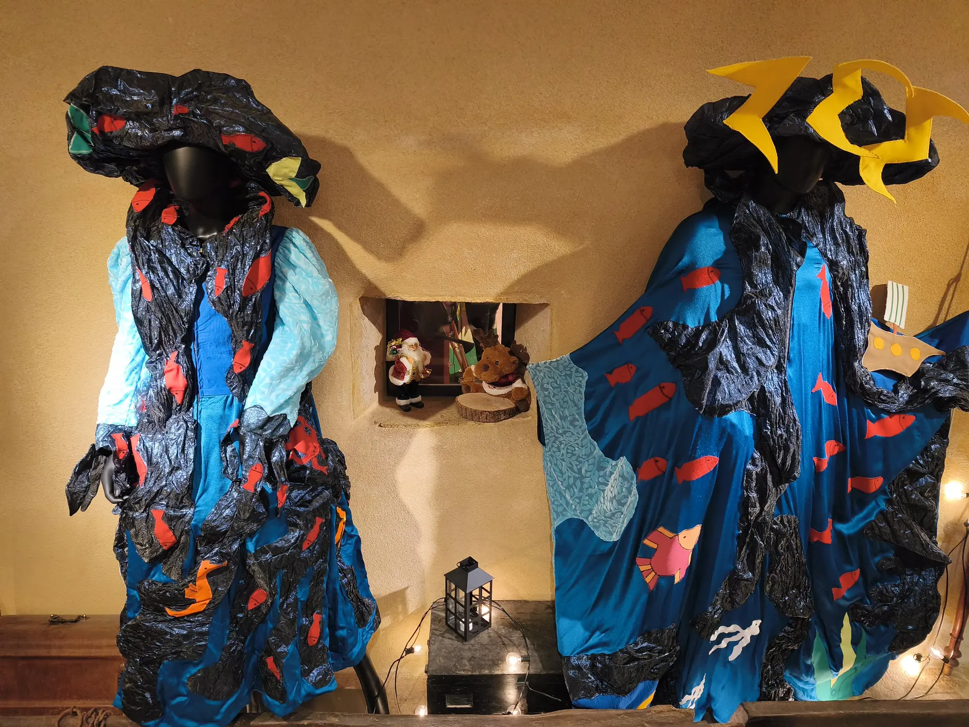 Exposition déambulatoire de costumes dans les magasins de Charlieu : les quatre éléments jeu familial