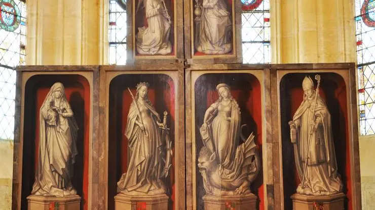 Beautiful set of stained-glass windows fitted in about 1480 and oak stalls (with “l’Homme Sauvage”) from the same period, the priory church houses a remarkable “Passion” altarpiece (listed Historical Monument) from 1466, the sculpted central scenes of which retrace Christ’s Passion, whilst the movable wings show the donor, Michel de Chaugy, and his forbears. Guided tour for groups by appointment.