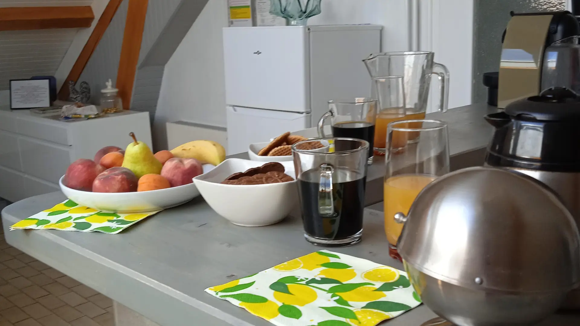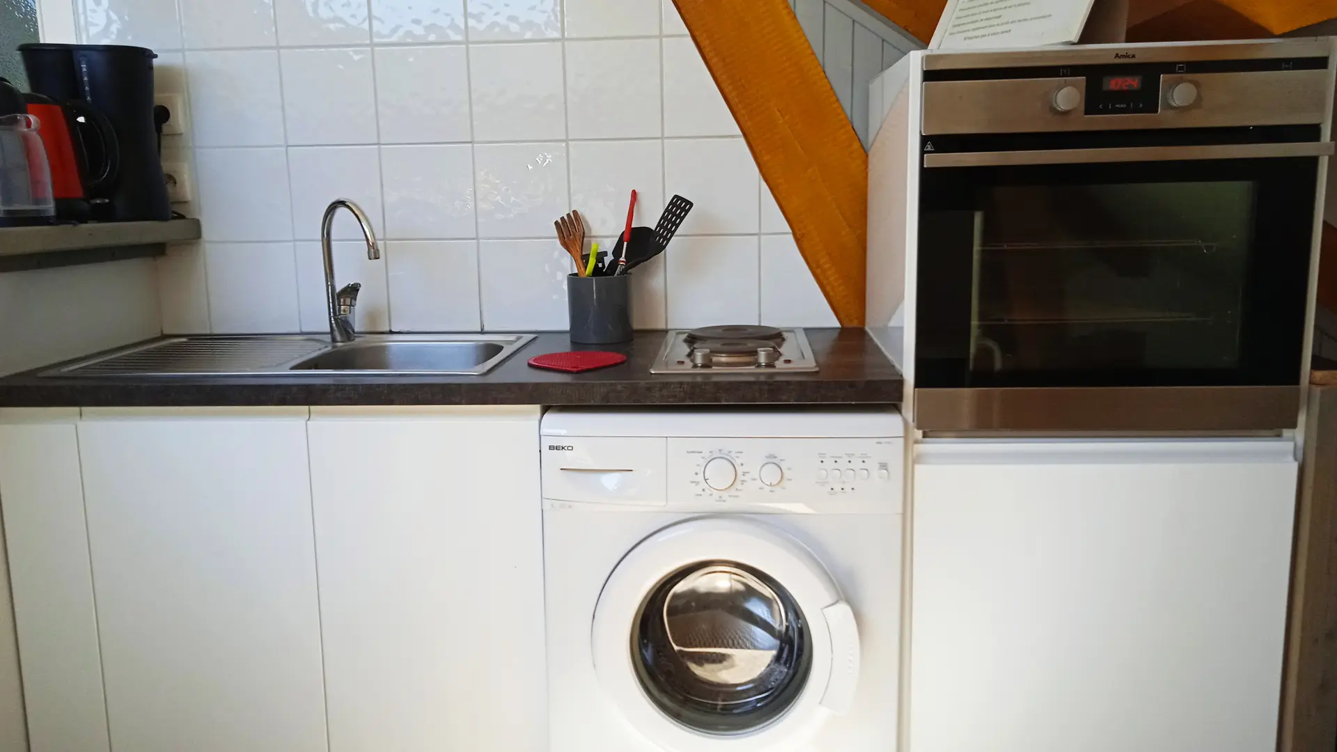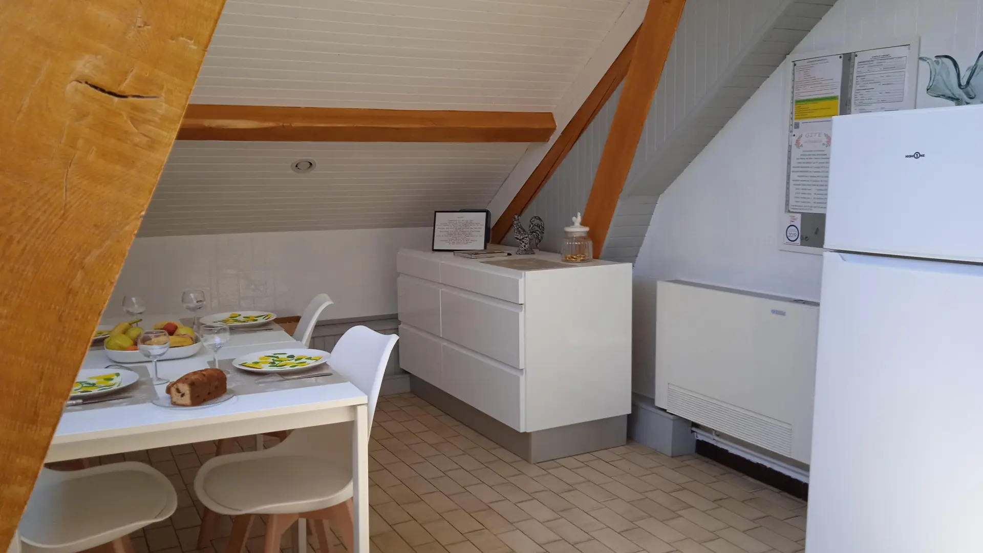 Ideal when travelling, on a training course, on holiday. Upstairs gîte accommodation, separate from the house; 2 rooms, bathroom WC, kitchenette, lounge area. Yard and garden.