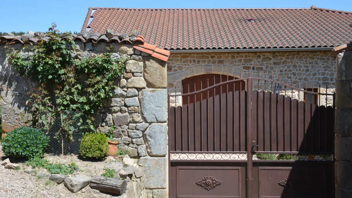 Bathroom (bath et walk-in shower). Vaulted cellar, garage. Attractive, fenced garden (650 sq. m.) : fine views of countryside. Covered area for shady outdoor dining. Stylish gîte, tasteful individual décor, top quality restoration (exposed stone, wood floors, original bread oven, etc.). Lovely, self-contained stone farmhouse, in the traditional, historic village of Montarcher. 123 sq. m. of accommodation on ground et 1st floors. Living room with lounge (DVD), wood-burning stove et dining area, fitted kitchen, leisure area : vaulted stone ceiling, 3 bedrooms (2 single beds, 1 double bed, 1 queen-size bed), 2 WCs. Central heating.