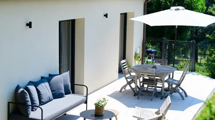 125m² gîte on two levels. On the ground floor you will find an entrance with large dressing room, a welcoming living room, a fully equipped kitchen/dining room to prepare delicious meals, and an office area. On this level, a beautiful bedroom with a 160x200 bed is fitted out, as well as a bathroom and a separate toilet. Upstairs, a large dormitory with two 160x200 beds with a large bathroom with a walk-in shower and a WC. Outside in the shared courtyard you will find parking spaces with a charging station for electric vehicles. On the garden side, a furnished terrace with a barbecue area and an outdoor lounge will allow you to fully enjoy sunny days or evenings under the stars. To make your stay ultra comfortable: the cottage is air-conditioned, utilities, cleaning and heating are included, beds are made upon your arrival and bathroom linen is available!