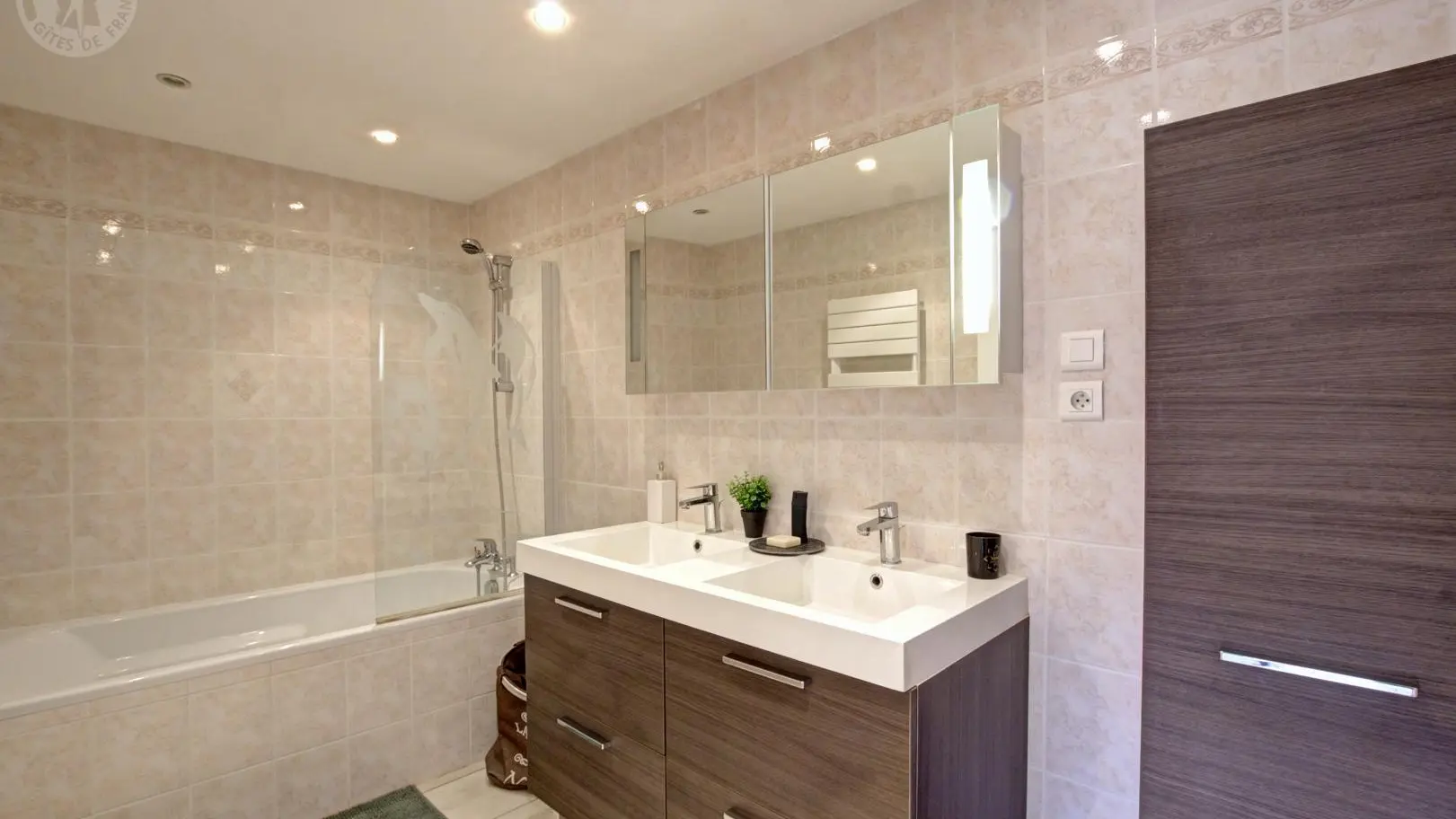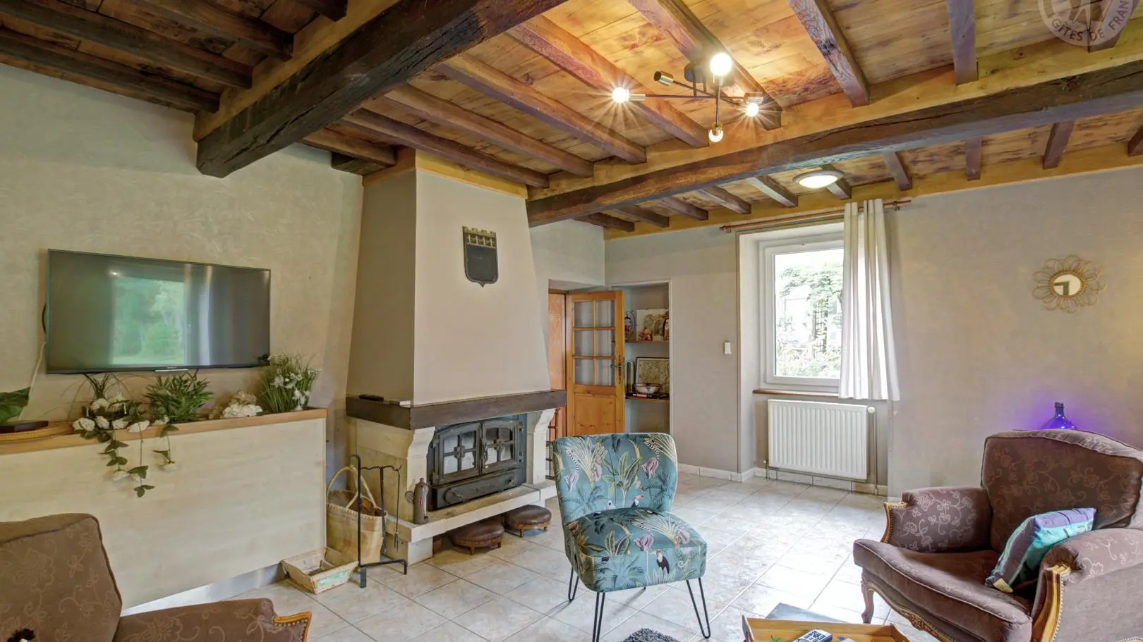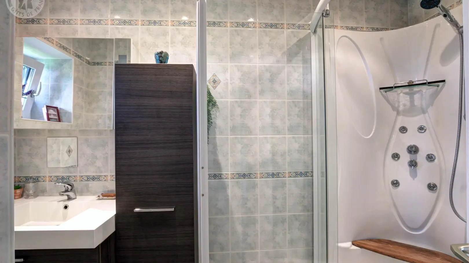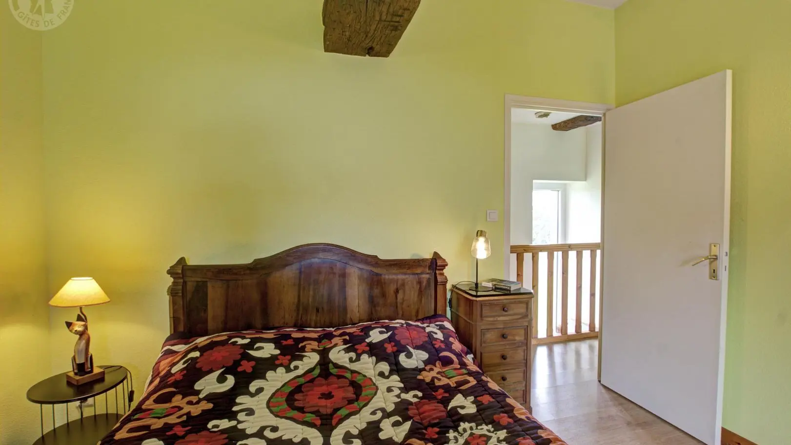 Gîte adjoining the owners' house of 140m² on the ground floor + upper floor. On the ground floor, you enter the integrated and equipped kitchen with dining room. The living room has a wood fireplace for a cozy and rustic atmosphere. On this level there are: a laundry room and a bathroom with WC. Upstairs, we find the 3 bedrooms. A master bedroom with a 140 bed & a baby bed and a private bathroom / a bedroom with a 140 bed and a child's bed / a bedroom with a 90 bed and a 140 high bed. On this level, there is a separate toilet and a bathroom (balneotherapy shower).