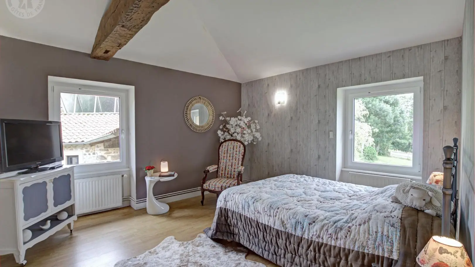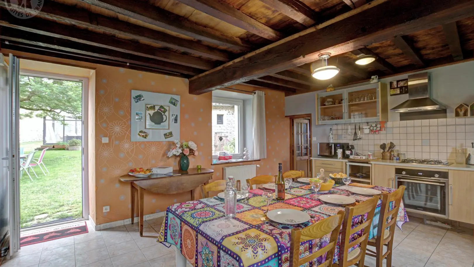 Christiane and Jean-Louis open the doors of their authentic stone farmhouse to you, converted into a dwelling house and a gîte. Le dôme de chassin is spacious accommodation with a warm country feel and good comfort to offer you a pleasant stay in a setting of gentle green and hilly countryside. Lots of charm and character: a stone porch, an enclosed gravel and grassy courtyard, a covered chapis equipped with garden furniture, ... There are approximately 2000m² of common, adjoining and accessible exteriors: a large meadow for football games, children's games with trampoline, a covered shelter with a ping-pong table, etc. For greater comfort, charges are included in the price.