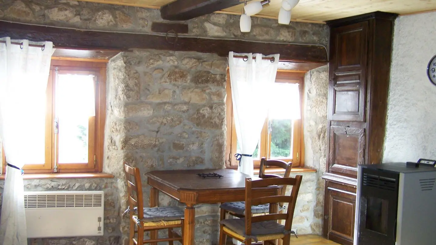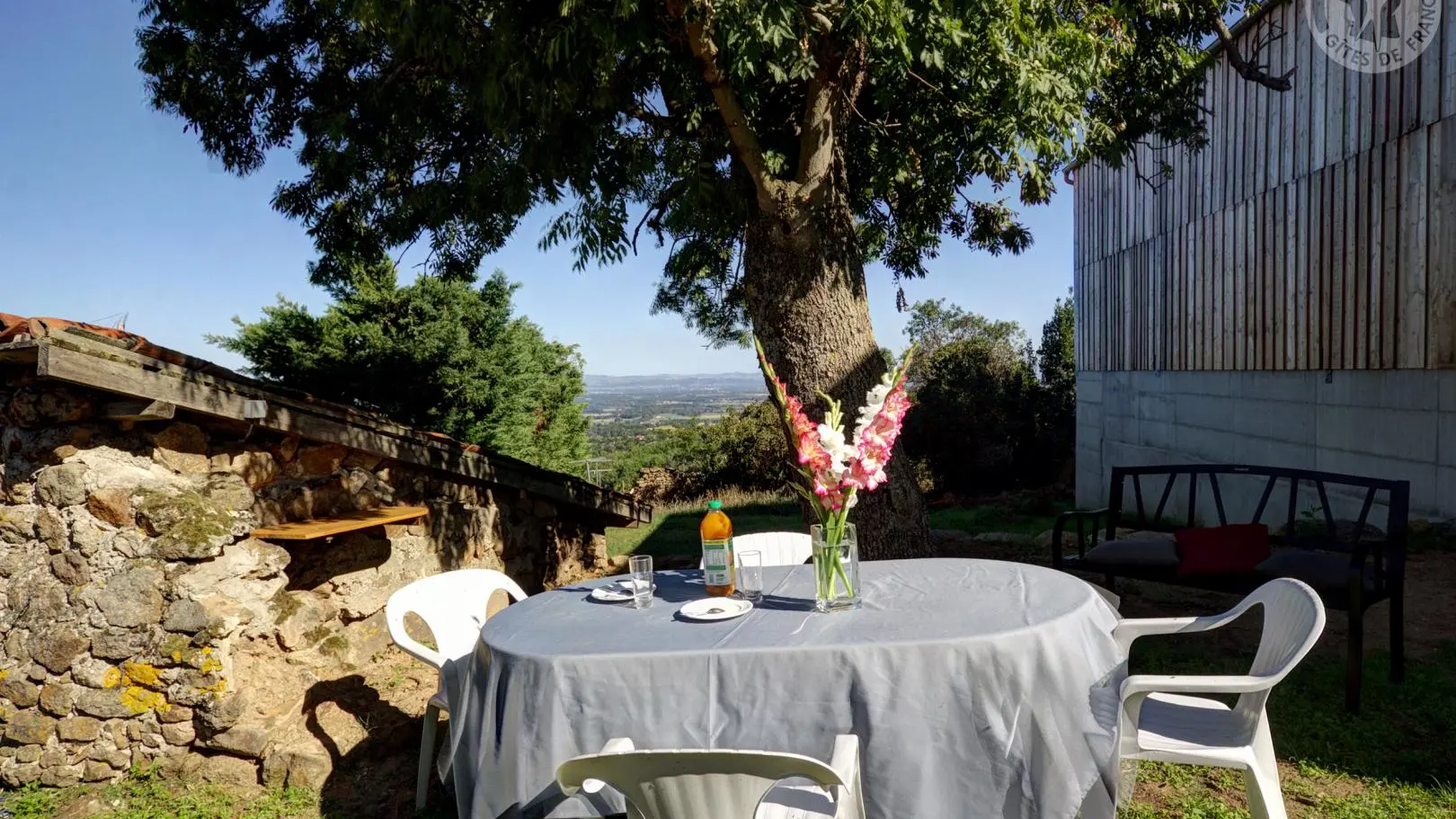 You will appreciate the interior with its stone walls, the stove, and the beautiful views over the Forez plain. Your land is located just in front of the cottage, about 50 m² of grass and beautiful shade, with private parking space, electric barbecue and garden furniture.