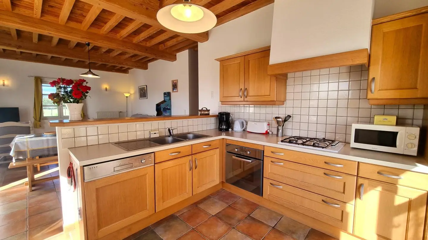 South facing for maximum sunlight. Well equipped with brand new fittings. Located on farm in open countryside, 5 min. from Montbrison. On plain with good views of the Monts du Forez. Ideal for hiking, cycling et exploring the region. Signposted tracks nearby. Tour of owner's farm on request.