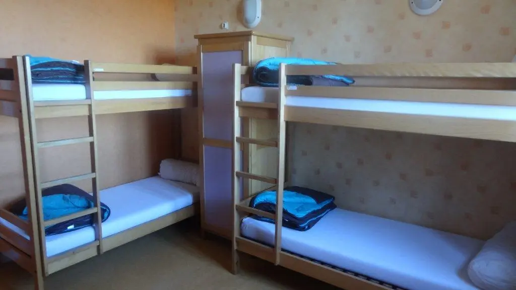 Bedrooms from 1 to 8 beds with basin sinks, bathroom on every floor + a shower, showers in the basement, 2 living-rooms, one of which is equipped with a stage and is fully equipped for sound, 3 classrooms or activity rooms, classes and outside games.