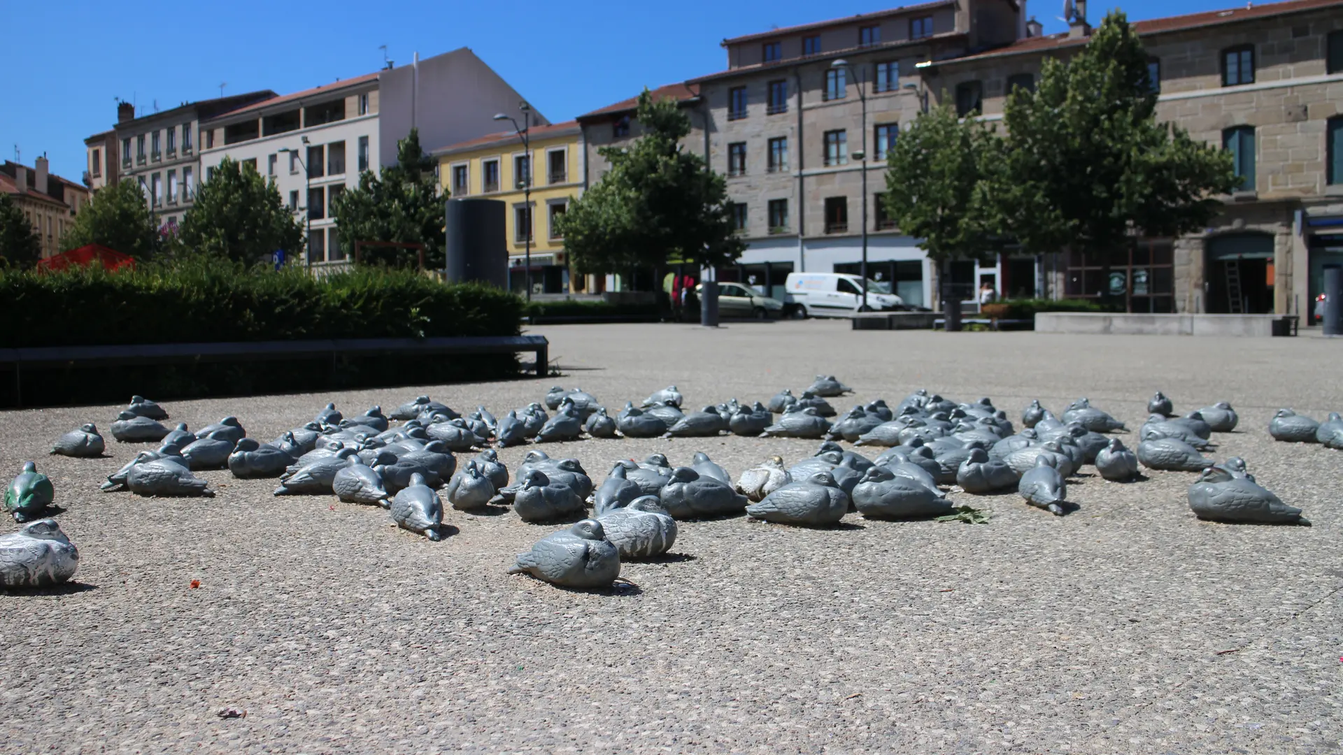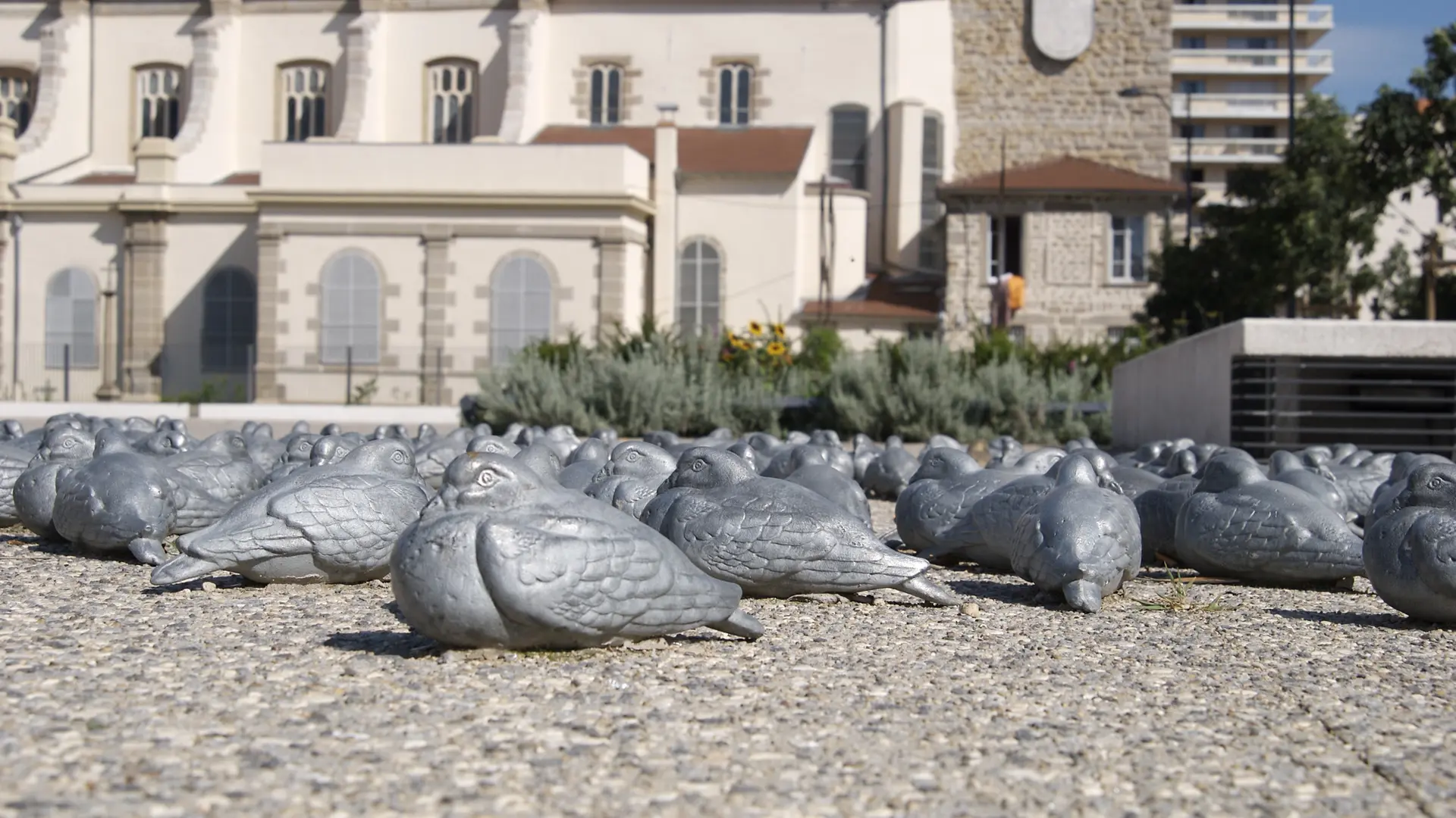 This installation by plastic artists Gyslain Bertholon and Maxime Bourgeaux presents a gathering of pigeons standing still, in silence.