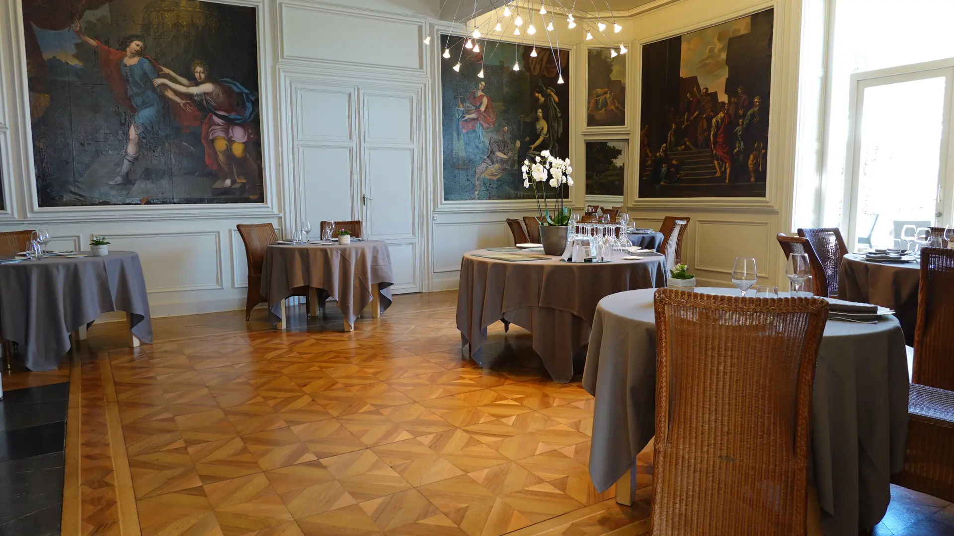 Dans le restaurant, les peintures du XVIIIe siècle offrent un agréable contraste pour apprécier la cuisine innovante d'Olivier Boizet.