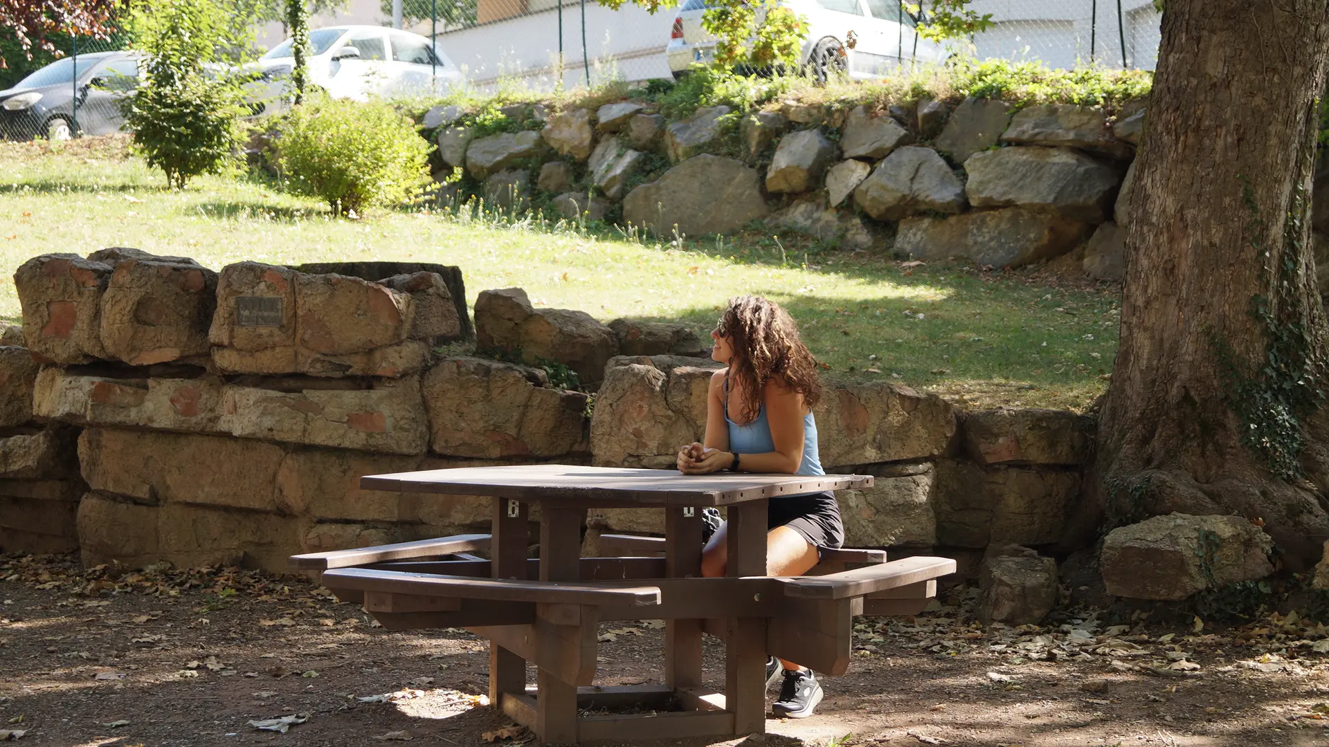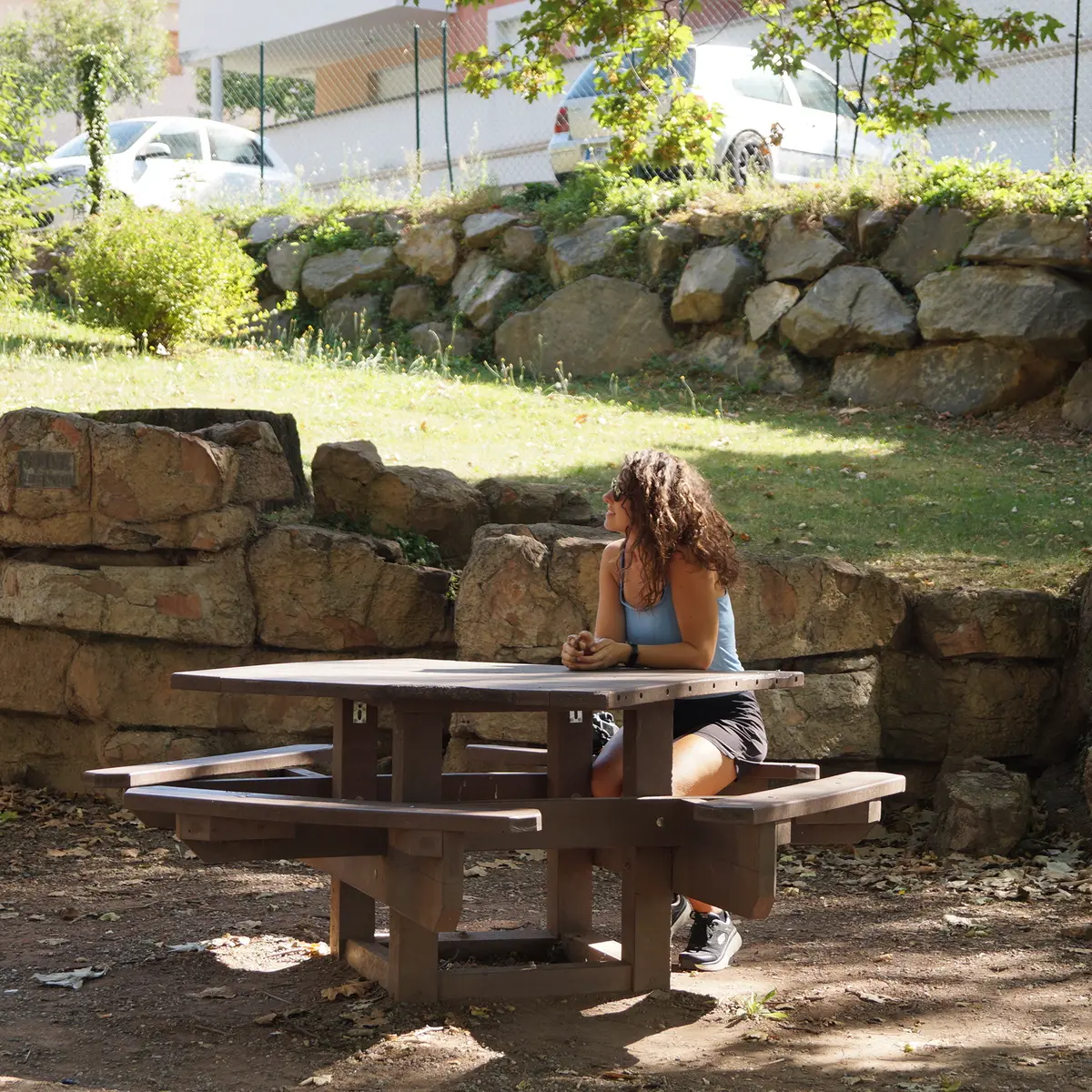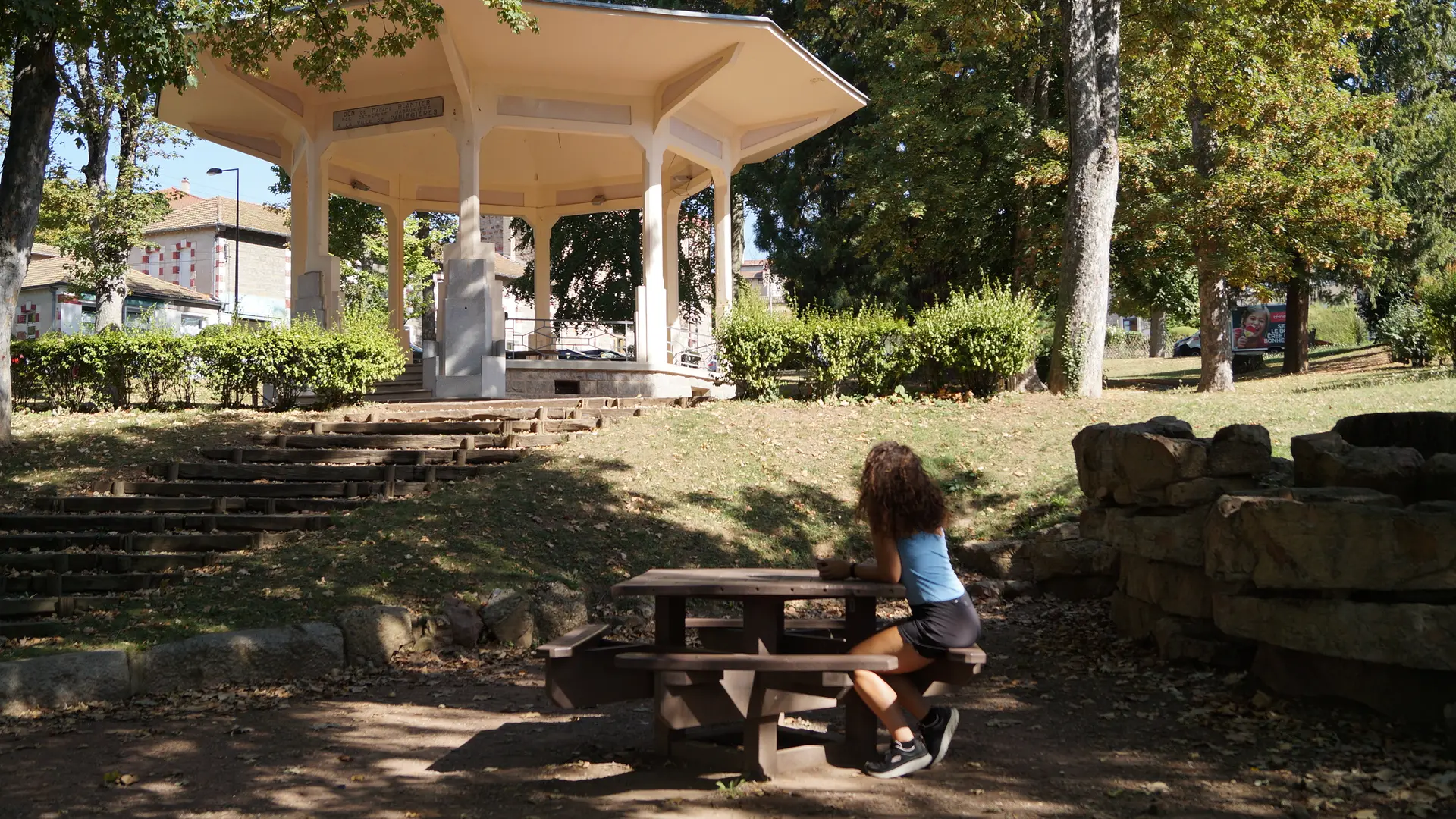 Tables de pique nique située dans le jardin public, à côté du kiosque, jeux pour enfants et petit étang du jardin.