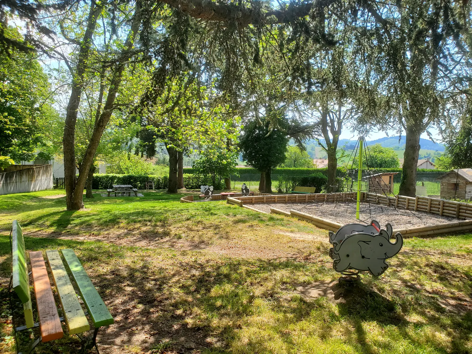 L'aire de pique-nique se situe au sein du jardin public dans un cadre verdoyant, pour un moment de détente où les enfants pourront profiter des différents jeux prévus pour eux (toboggan etc...).