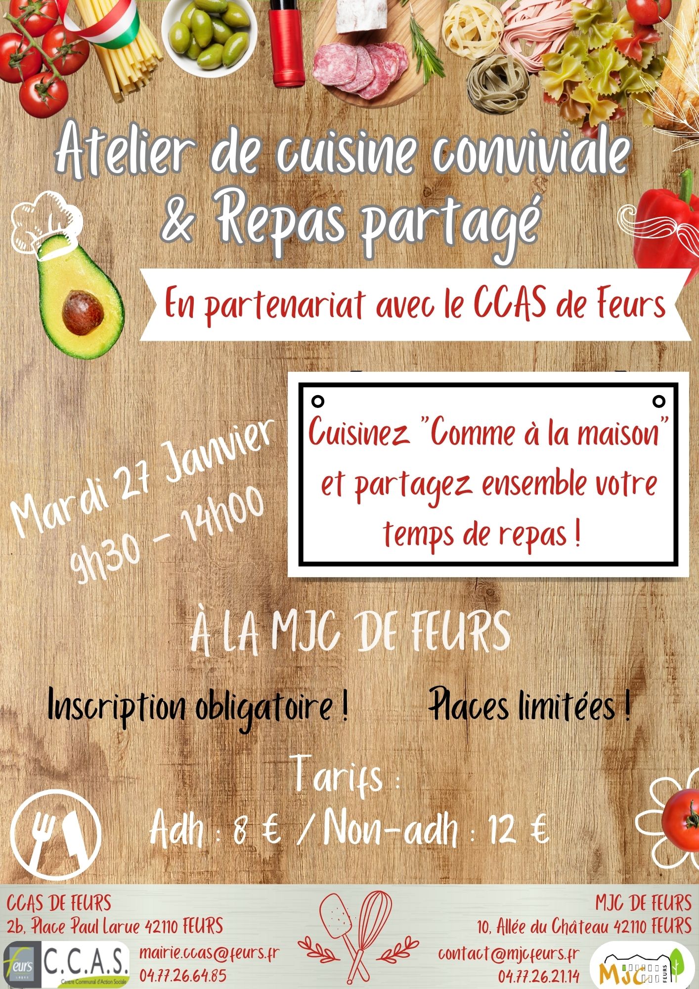 La MJC, en collaboration avec le CCAS de Feurs, propose une matinée de cuisine conviviale qui sera suivie par un temps de repas partagé.