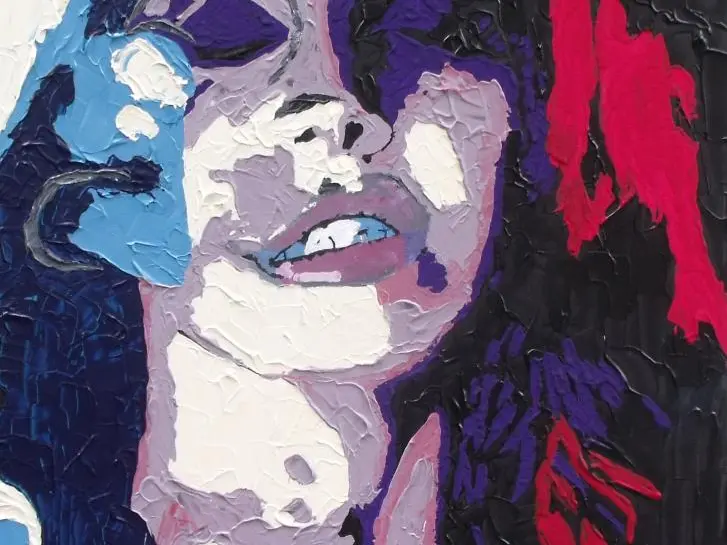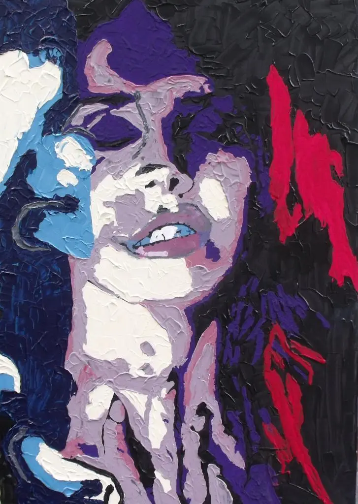 Ma peinture : "popArt", kaléidoscopique, irrévérencieuse, rock .... Acrylique sur toile, plutôt "grand format" ( 70 X 90 ) je créé des mosaïqués de couleurs, où les ombres et les lumières suggèrent les contours de l' image.