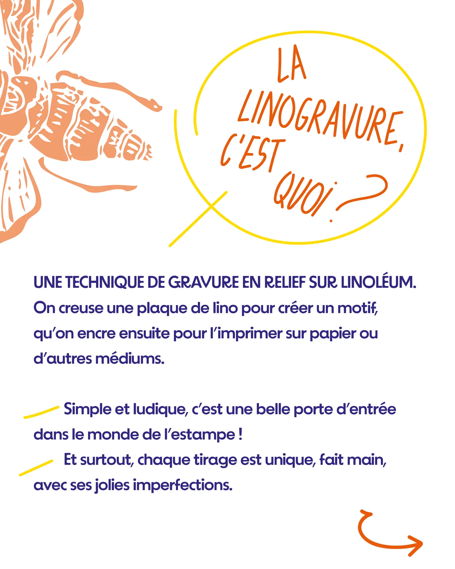 Stage (2x3h) : développe un projet personnel, explore couleurs et formats plus grands. Repartez avec 1 ou plusieurs plaques et 10 à 30 impressions.