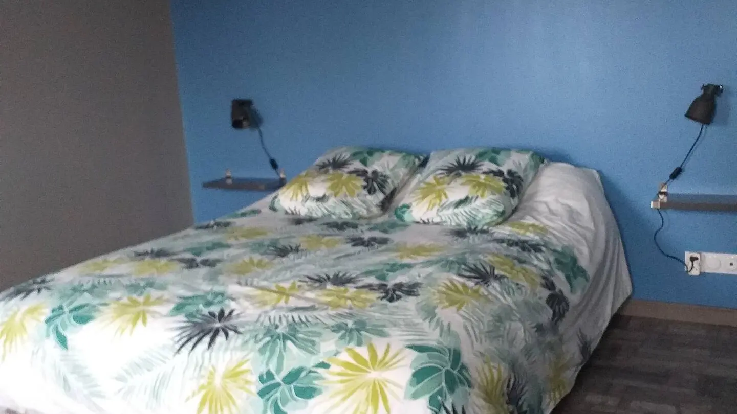 - D’une Grande Chambre avec un Dressing, un Bureau + une chaise, Un grand lit (160cmx190cm) + TV