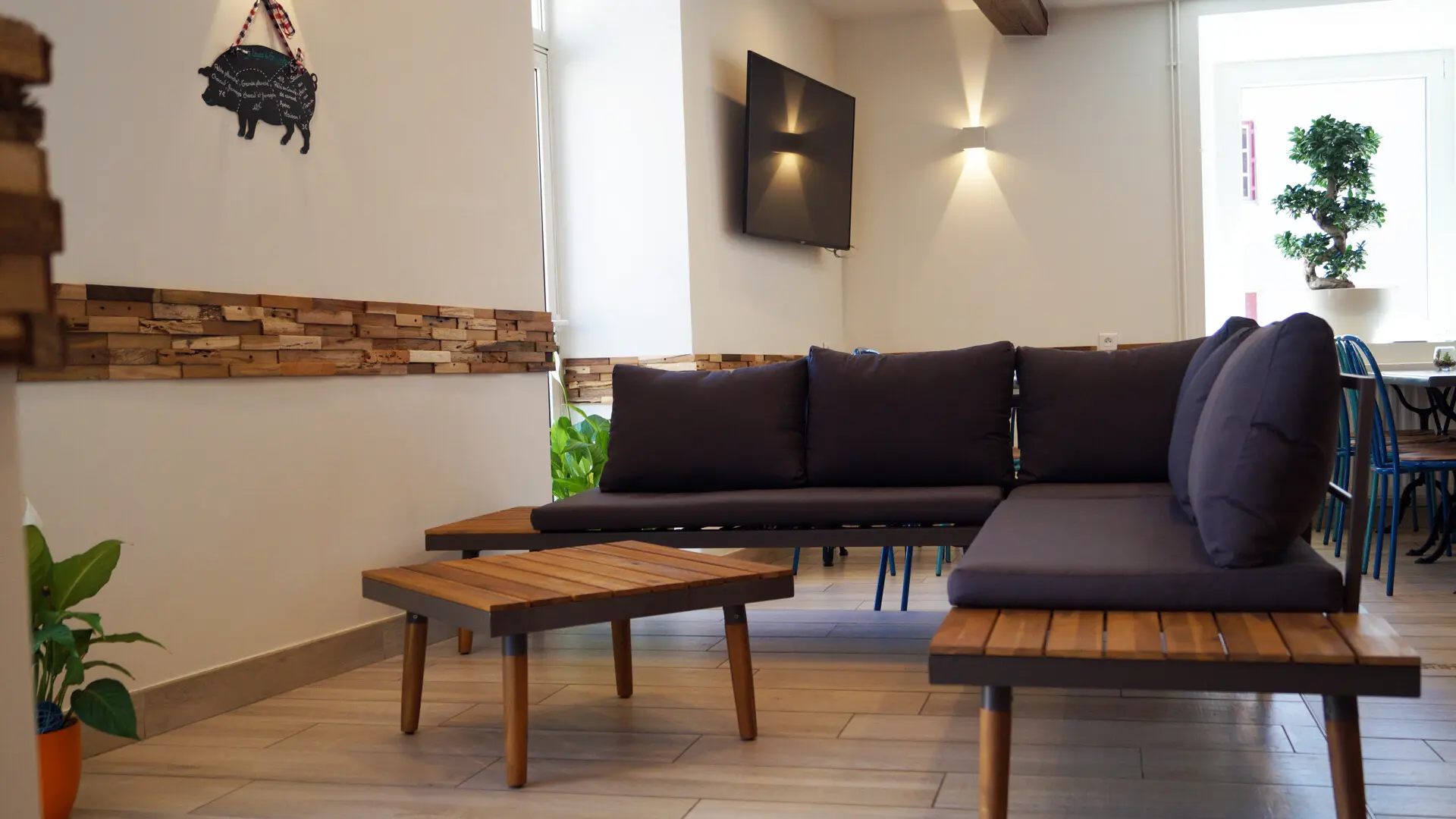 Pour venir boire un café le matin, partager un repas d’affaire, en famille ou entre amis, ou pour l’apéro autour d’une planche…!