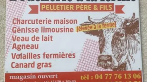 Vente de la ferme : charcuterie maison, génisse limousine, veau de lait.