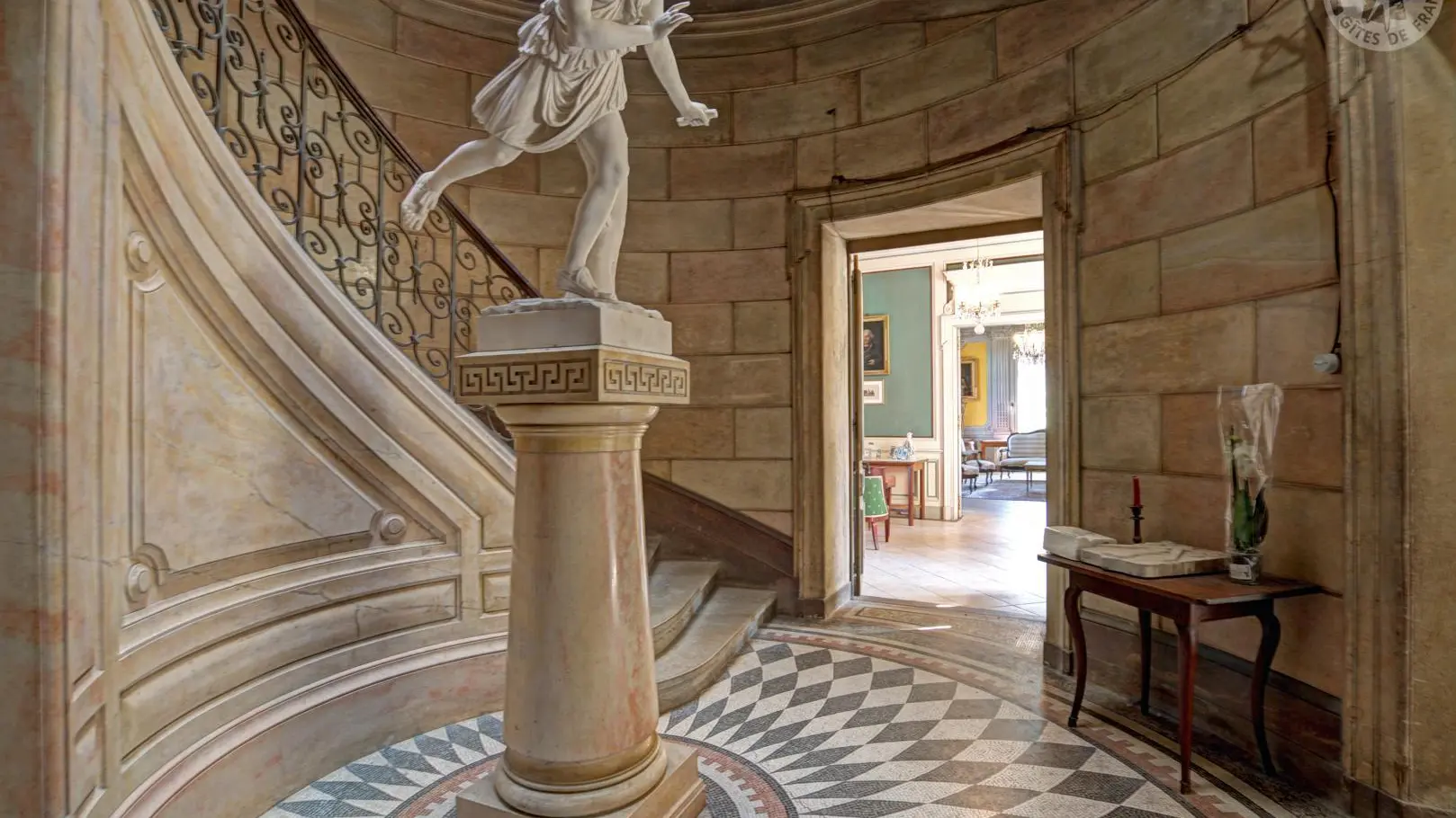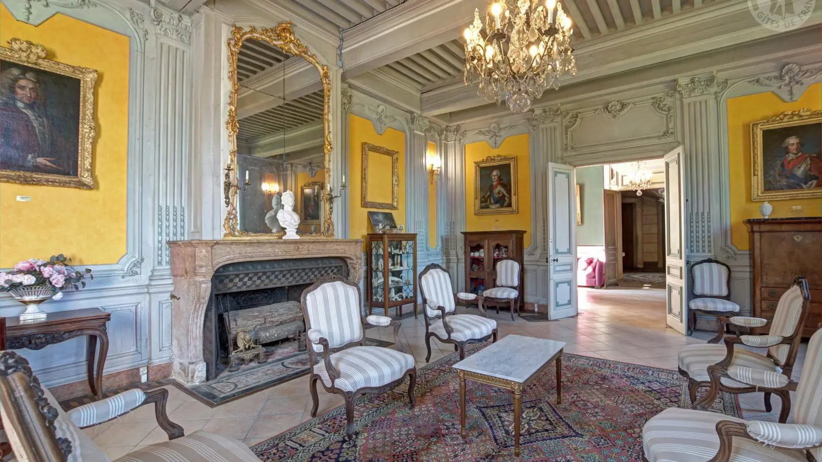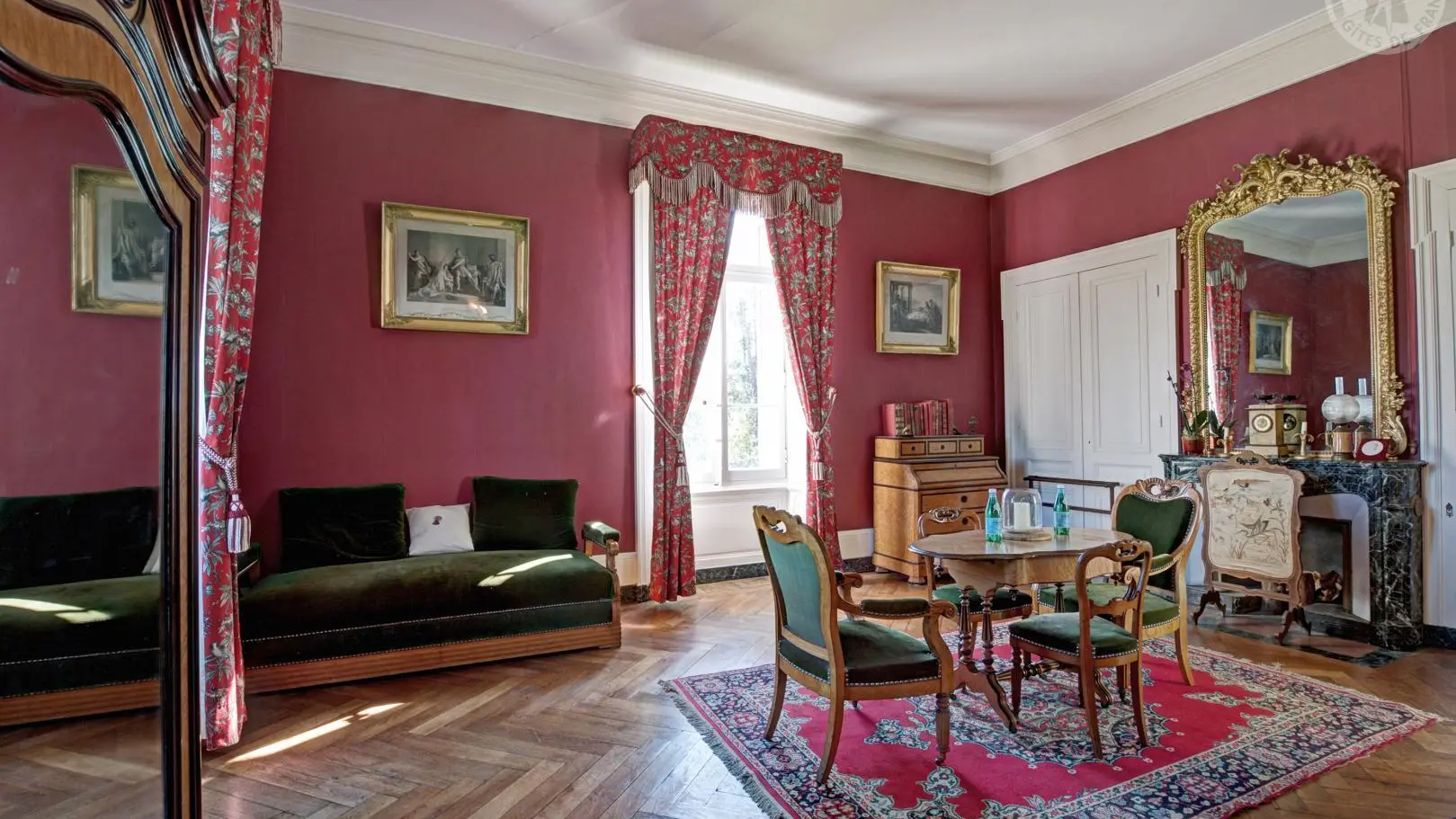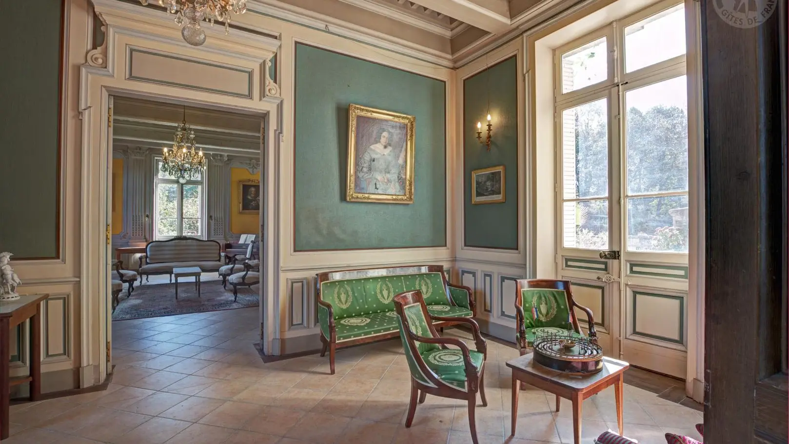 Les pièces communes comprennent un salon et une salle à manger avec terrasse donnant sur le parc. L’édifice conserve également des fresques XVIIe, les seules douves médiévales encore en eau de la région, ainsi qu’un majestueux escalier XIXe, révélant tout le charme et la richesse patrimoniale du lieu.