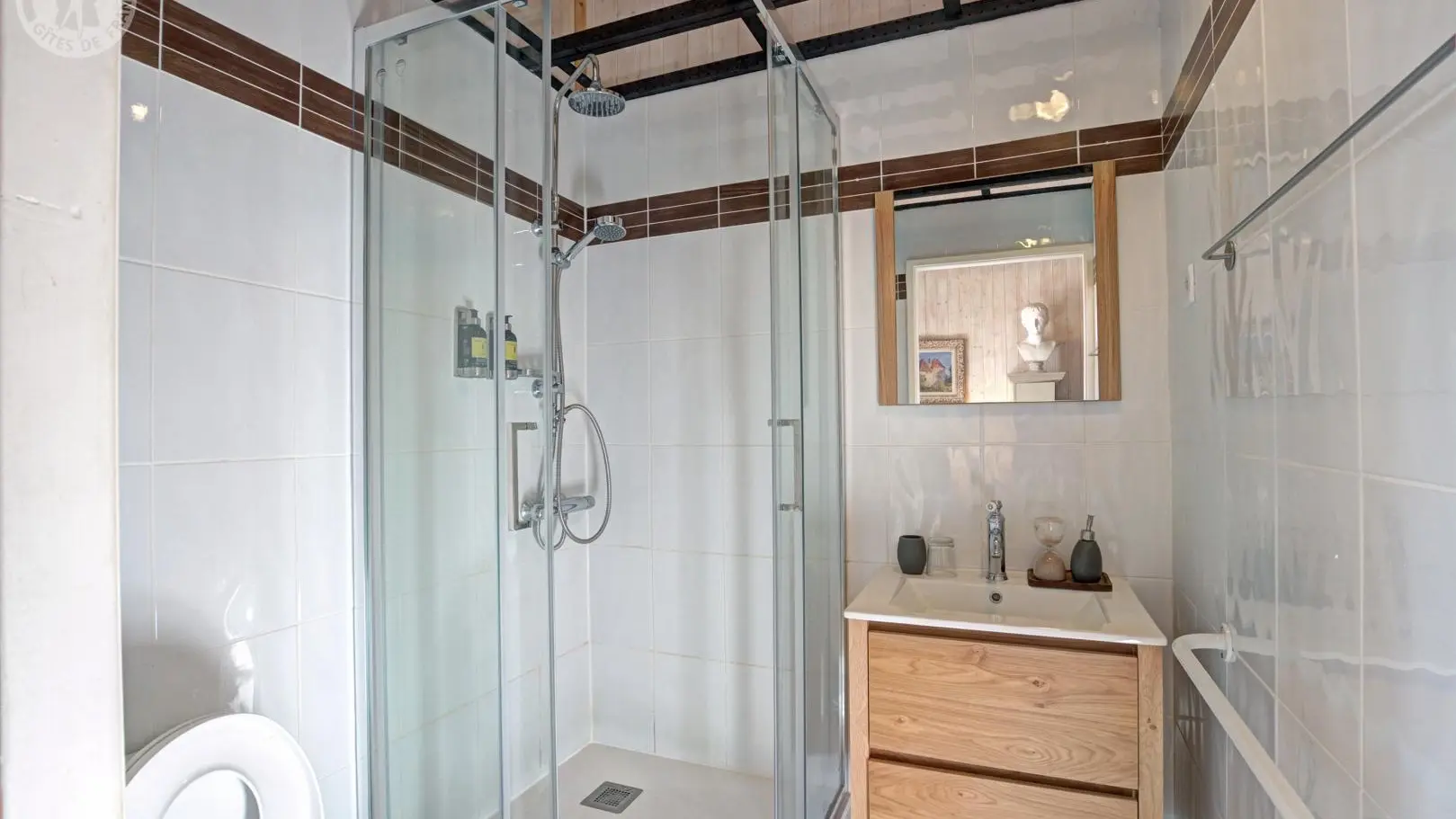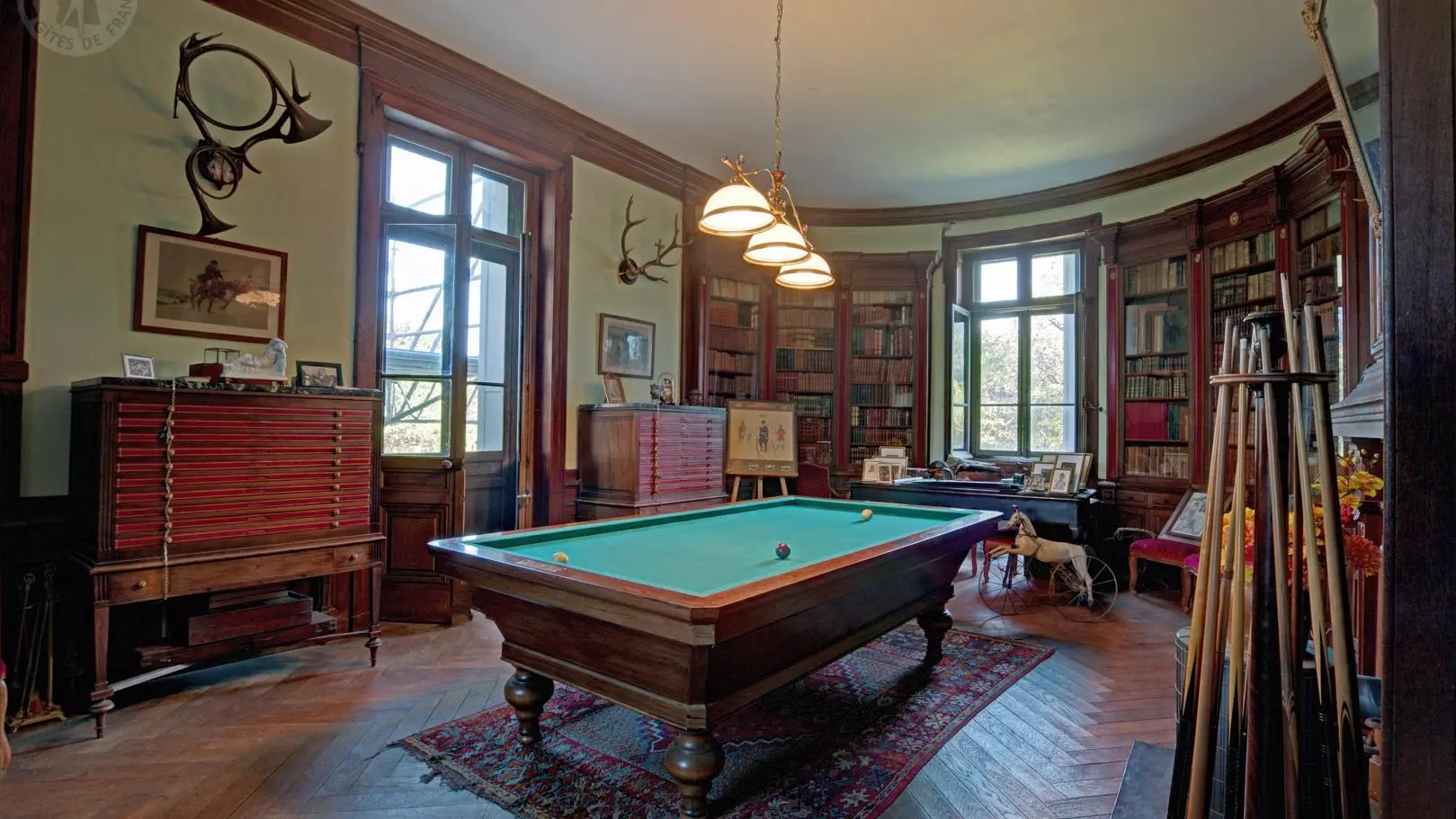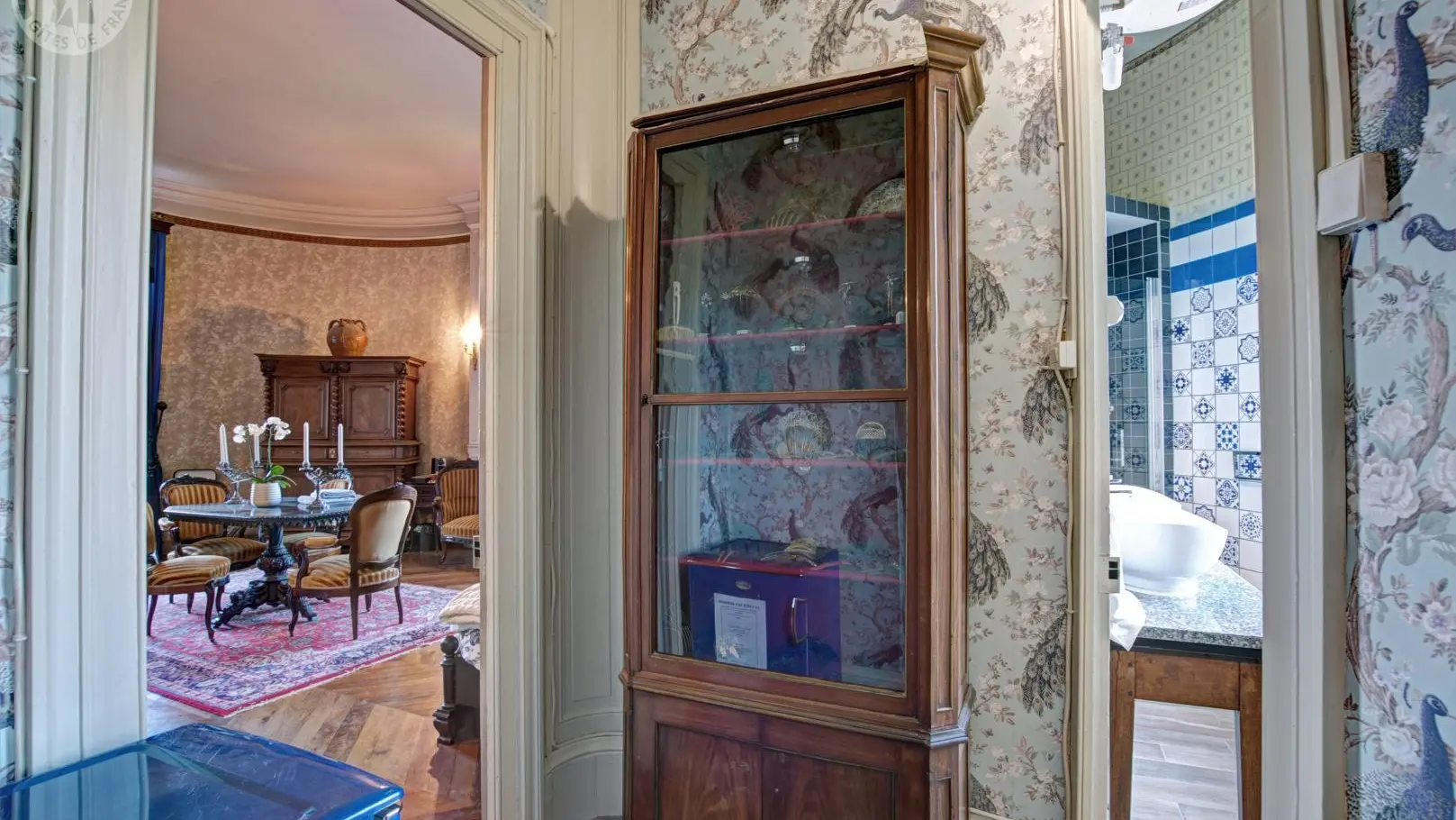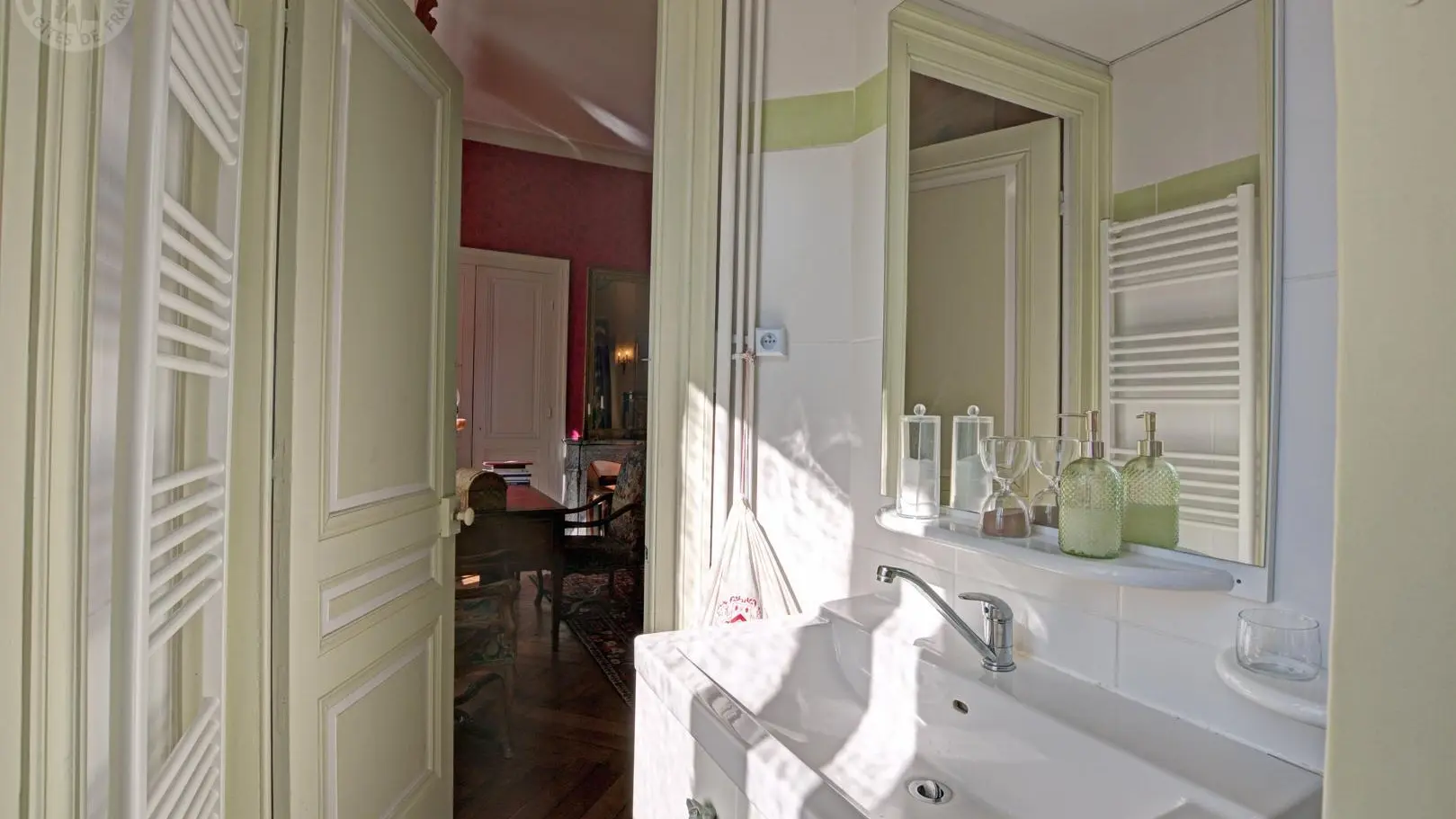 Les pièces communes comprennent un salon et une salle à manger avec terrasse donnant sur le parc. L’édifice conserve également des fresques XVIIe, les seules douves médiévales encore en eau de la région, ainsi qu’un majestueux escalier XIXe, révélant tout le charme et la richesse patrimoniale du lieu.
