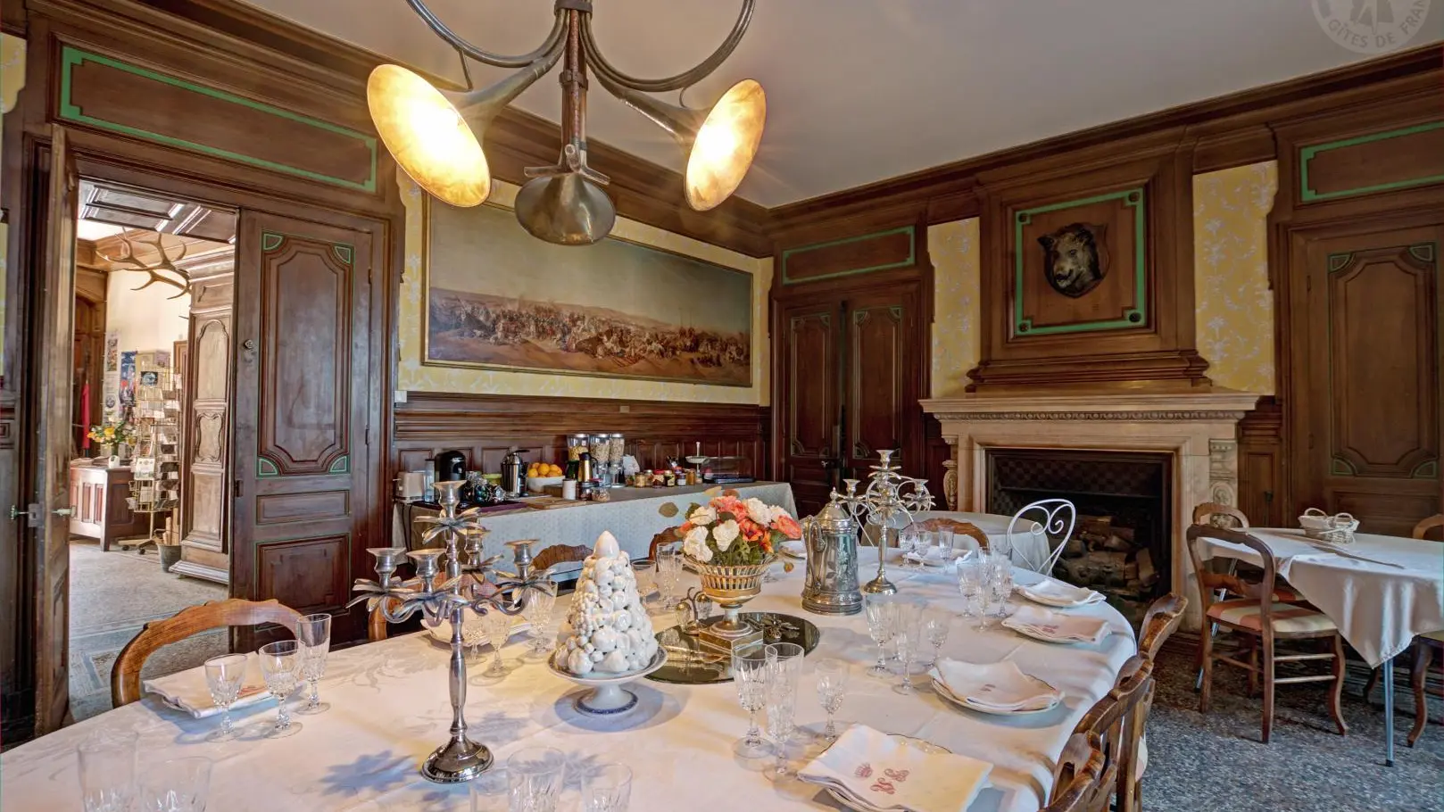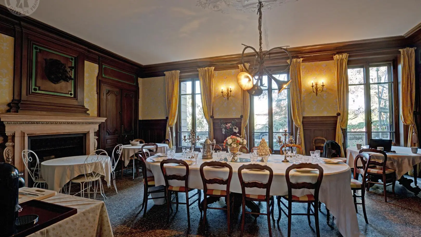Château de 800 ans classé Monument historique, il offre 5 chambres d'hôtes dont 3 suites familiales, décorées avec goût sur le thème du XIXe siècle, chacune avec sa propre personnalité. Le petit-déjeuner peut être servi sur la terrasse de la salle à manger ou dans la salle des fresques classée du XVIIe siècle.