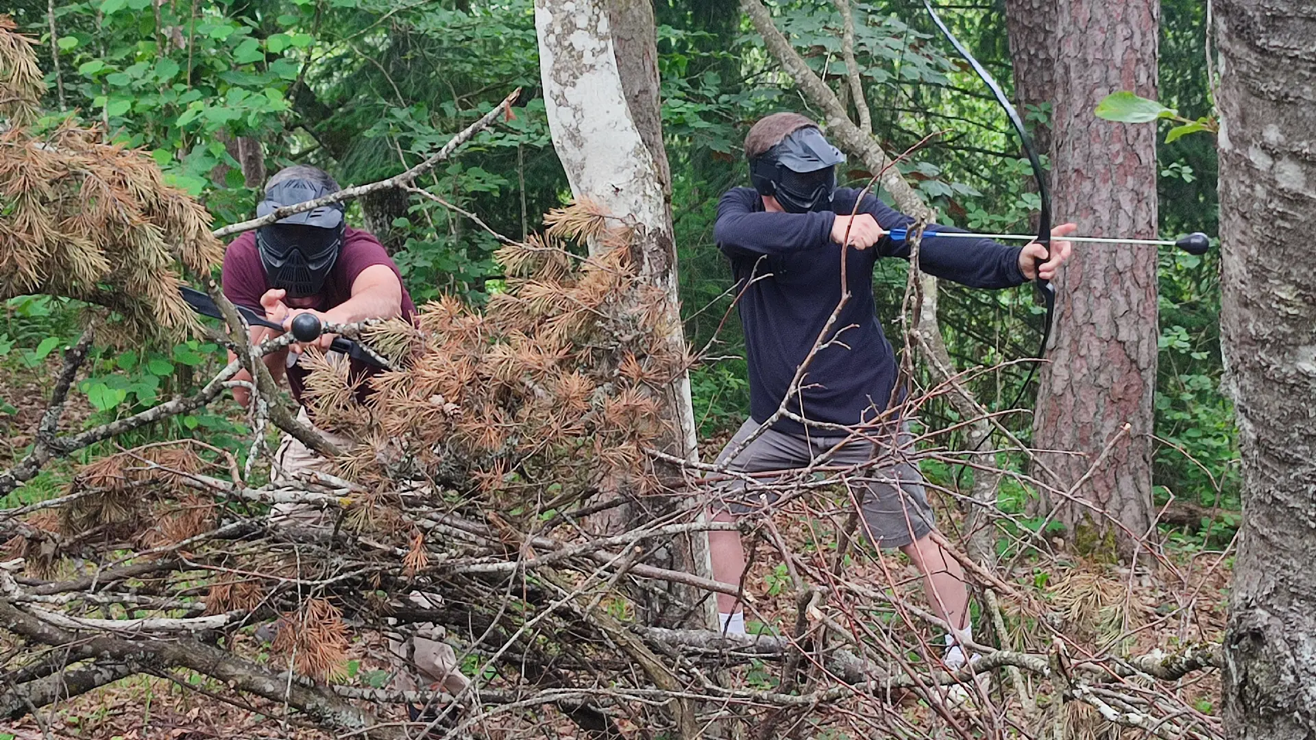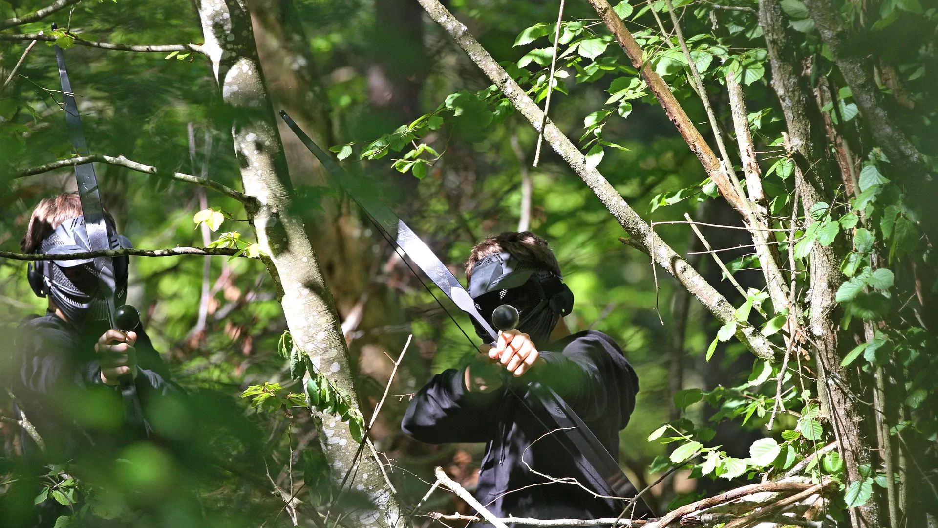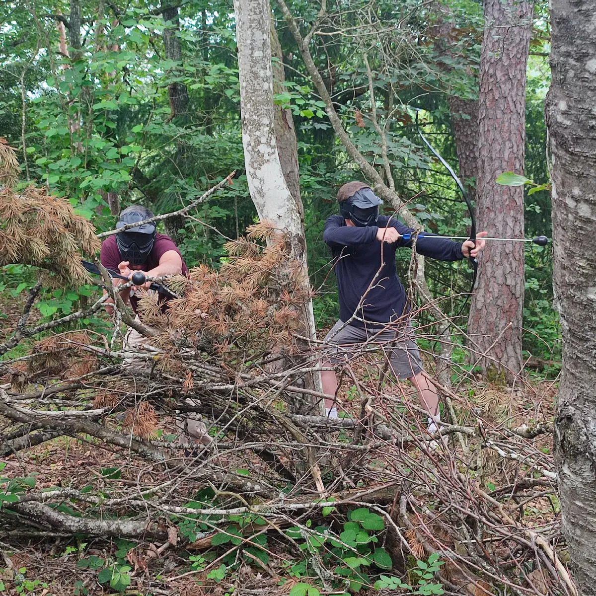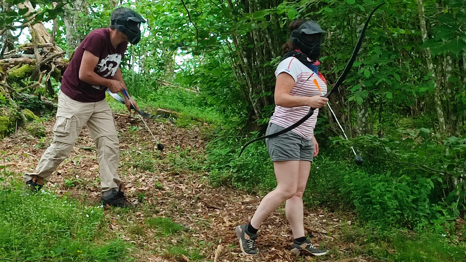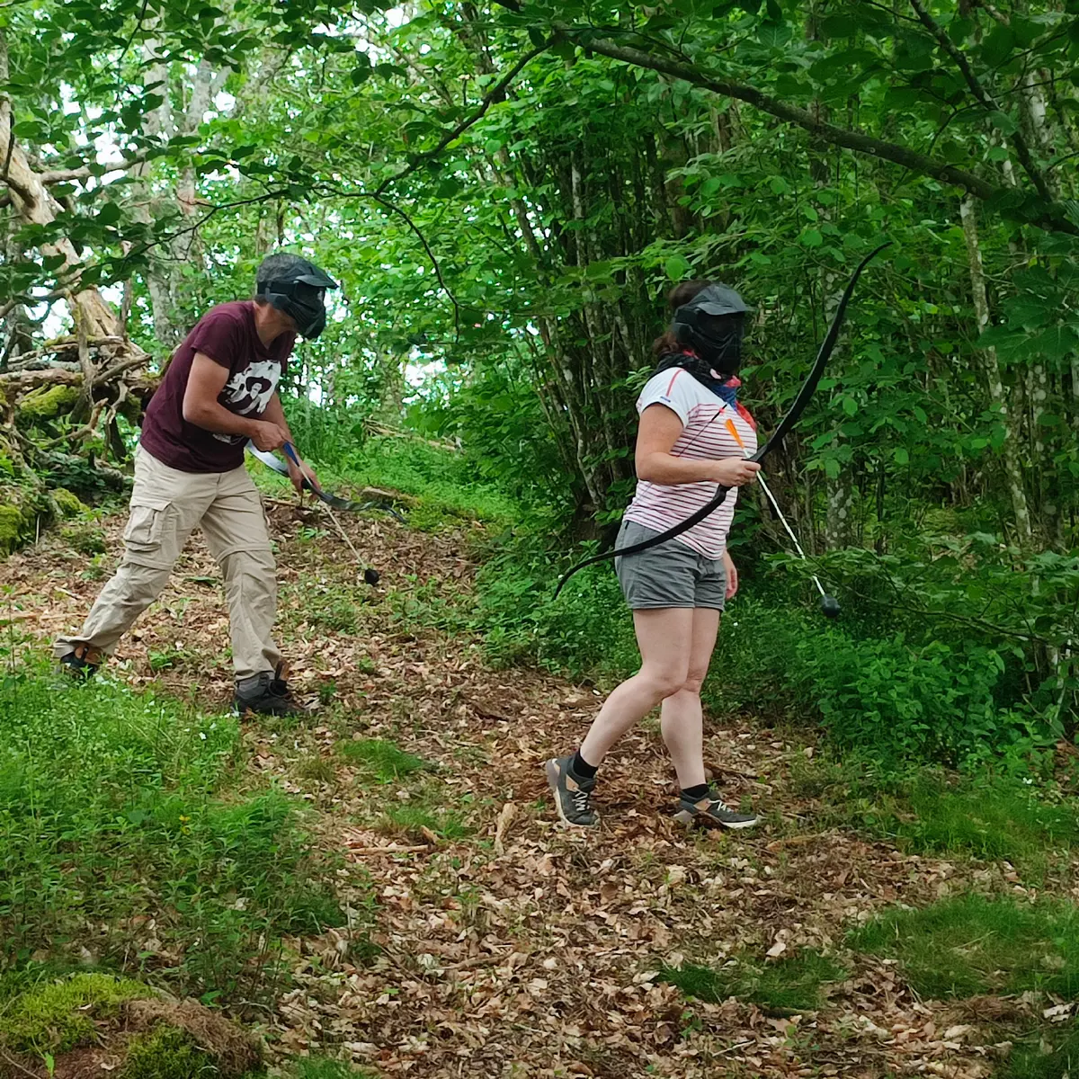 En moyenne montagne, dans une forêt idyllique avec des espaces variés, vous pratiquerez l’Archery Quest, combat entre archers avec des flèches en mousse protégées et un masque de protection.