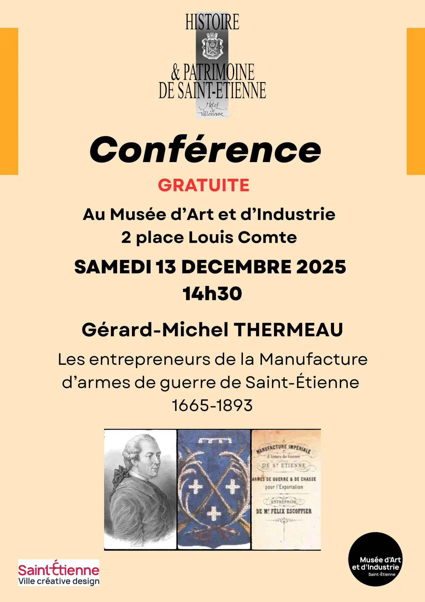 Contactez Conférence - Les entrepreneurs de la Manufacture d’armes de guerre de Saint-Étienne 1665-1893"
