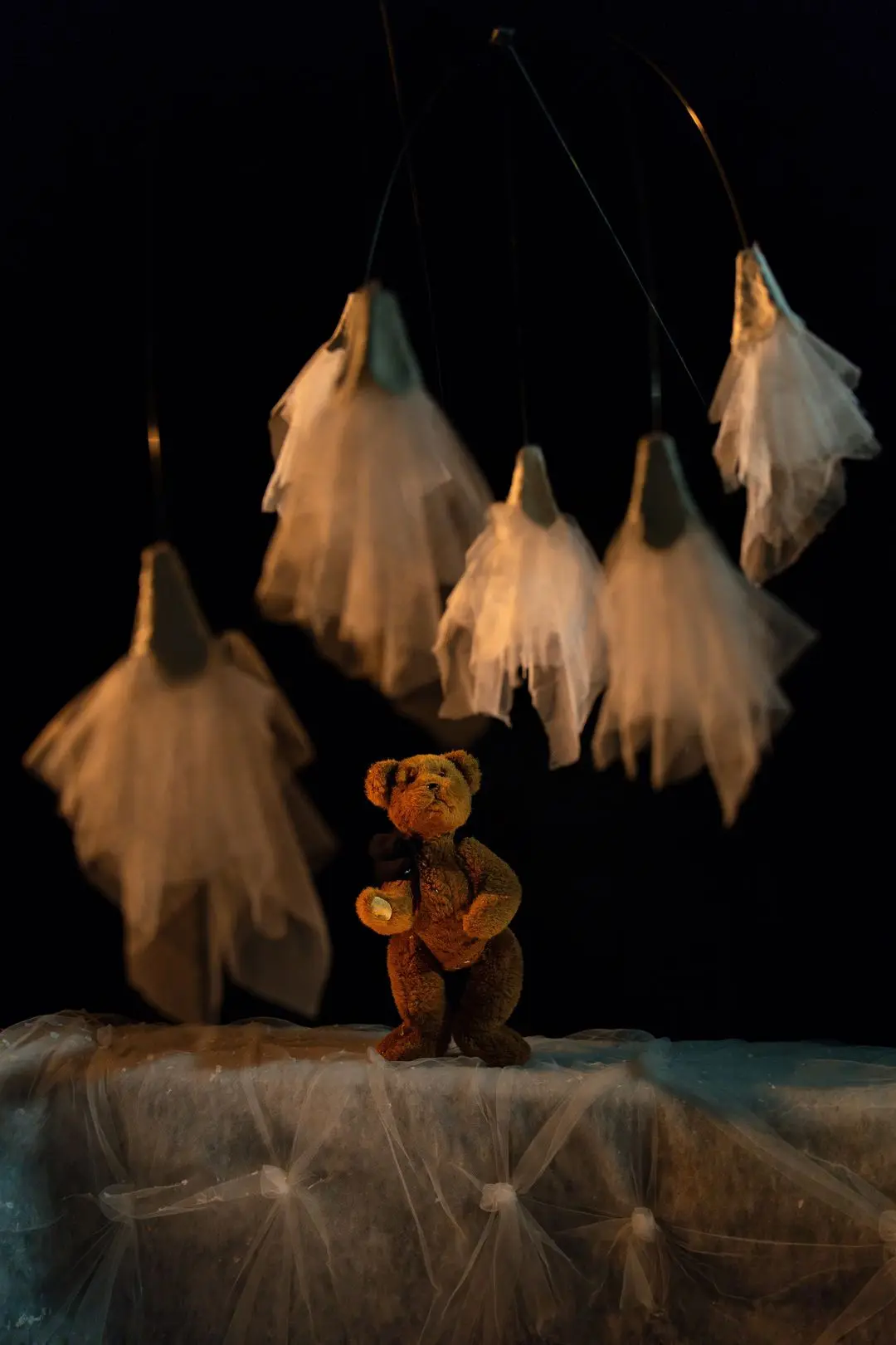 Antonin est un ours en peluche. Au réveil, seul dans la forêt, il se rend compte qu’il a été abandonné. Entre rêve et réalité il se lance alors à
