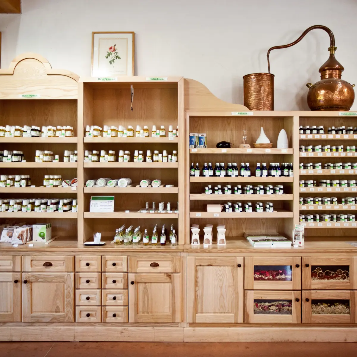 - un magasin de produits de bien-être biologiques (huiles essentielles, gels douches, shampoings, huiles de massage, cosmétique, sticks d’urgence ...).