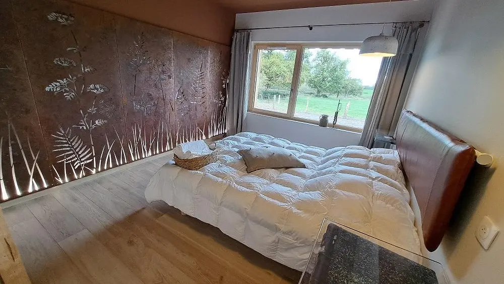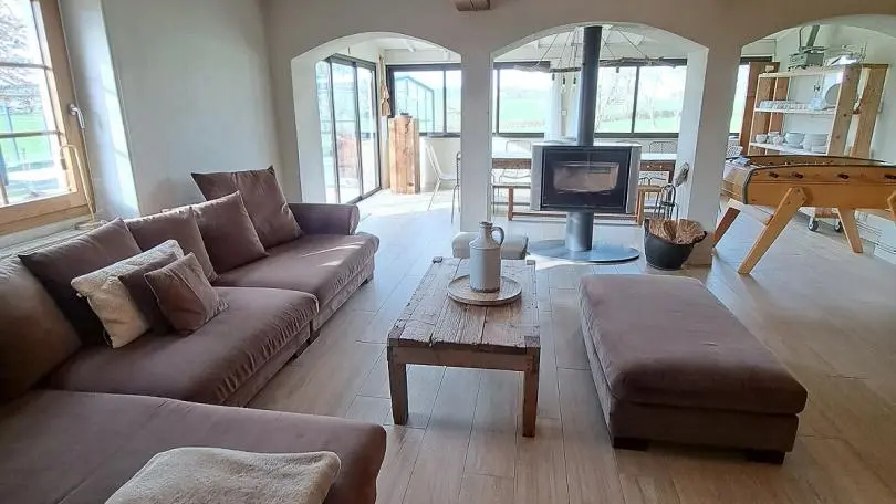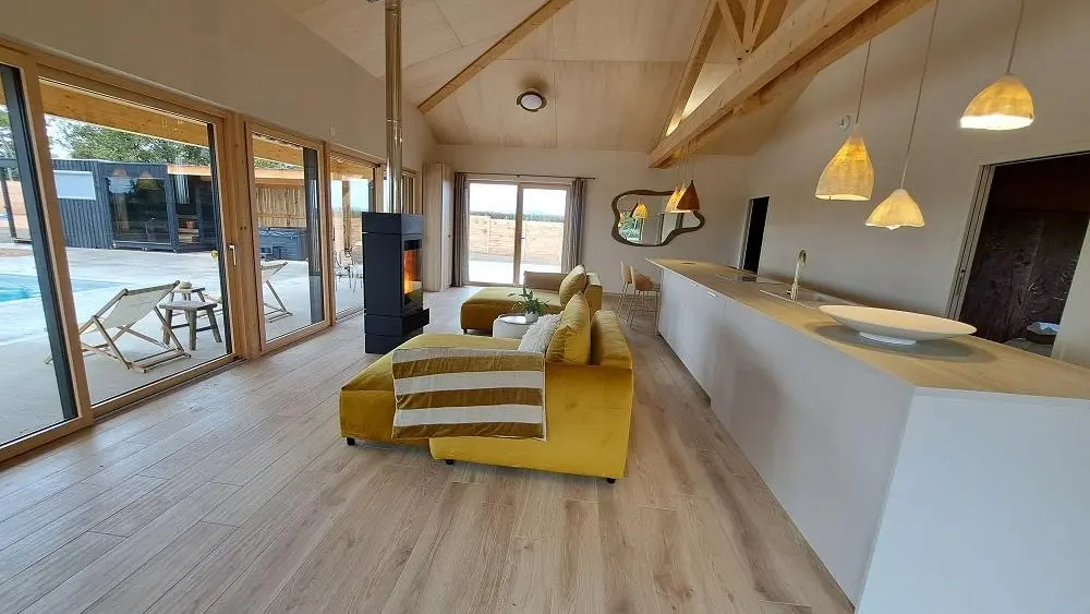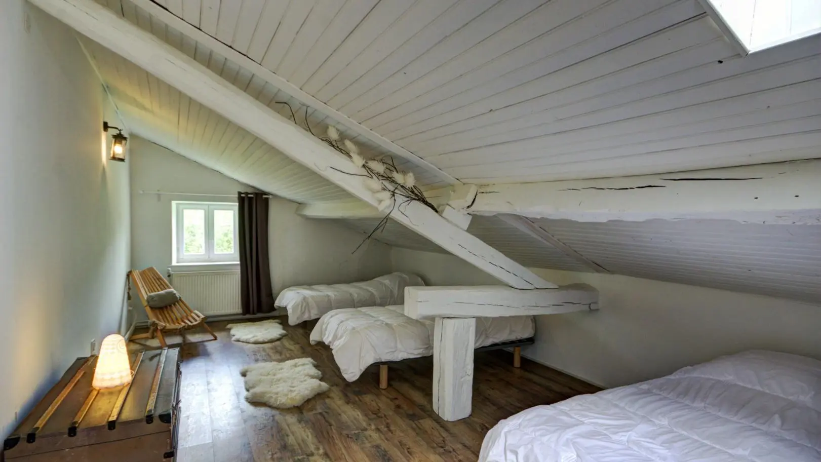 Ses gîtes sont idéalement conçus pour accueillir jusqu'à 18 personnes. Le gîte "La Ruche" de 190m² en rez-de-chaussée et étage, s'ouvre sur une belle pièce de vie lumineuse de 60m² avec cuisine ouverte sur la salle à manger et l'espace salon pour vous retrouver en tribu. Le gîte dispose de cinq chambres doubles et d'une chambre pour quatre, avec deux douches et deux WC indépendants. Le gîte "Le Bau" de 90m² de plain-pied, comprend une cuisine moderne entièrement équipée ouverte sur un espace repas et un salon cocooning. Le gîte compte deux chambres décorées avec soin : la première dispose d'un lit 160x200 cm, la seconde de deux lits 90x200 cm jumelables en grand lit 180 cm selon les besoins. La salle d'eau, spacieuse et accessible PMR, comprend une grande douche à l'italienne, une vasque et un WC. Location week-end et courts séjours possible. Une borne de chargement pour votre véhicule électrique est à votre disposition. Pour les tribus : regroupement de deux gîtes à 250m l'un de l'autre (14 personnes et 4 personnes). Chaque maison de vacances dispose de sa piscine privative (l'une utilisable toute l'année) , et de son espace bien-être dédié. Maison parfaite pour une semaine de vacances ou vos week-ends de fête. Tandis que les enfants profitent joyeusement de la piscine, certains s'adonnent à des parties endiablées de ping-pong, baby-foot, pétanque. D'autres préfèrent se reposer dans le sauna hammam et alterner avec la douche à sensation ou le spa. Retrouvez-vous pour un moment convivial (cave à vin, tireuse à bière) ou d'un bon repas dans la grande pièce à vivre réchauffée par un poêle à bois tournant (bois inclus). Notre masseuse professionnelle vous propose des massages dans votre hébergement. Profitez des nombreuses balades à pieds, vélo et cheval dans la campagne et dans la forêt de Lespinasse.