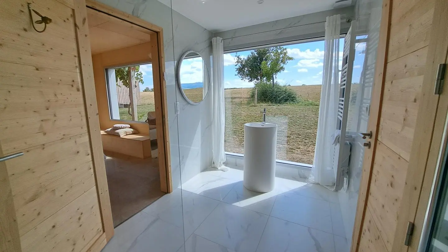 Gîte idéal pour se ressourcer en couple ou en famille (max 4 personnes), se loue pour quelques jours, au weekend ou à la semaine. Vous arrivez au milieu des prés, le spa pour 4 personnes est sous la pergola (l'eau est à 37°c toute l'année). Les draps sont fournis (2 chambres). Reposez-vous dans le grand séjour, le poêle à bois (bois inclus) est là pour vous réchauffer. Par la grande baie vitrée une vue sur l'étang privé (pour vos pique-niques ou parties de pêche). Pour votre bien-être un sauna-hammam, une douche écossaise : vous allez adorer prendre soin de vous ! Besoin absolu de vous retrouver avec vous-même, ou de partager des moments insolites, un massage favorisera votre bien être intérieur et vous créera des souvenirs inoubliables. Notre relaxologue professionnelle vous propose des massages dans votre hébergement. Grâce aux nombreux monastères, abbayes, villages de caractère, partez à la découverte de véritables oasis de sérénité.