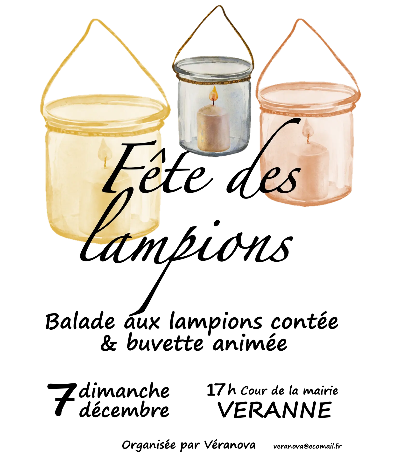 Véranova vous invite dimanche 7 décembre à partir de 17h dans la cour de la mairie de Véranne à sa Fête des Lampions