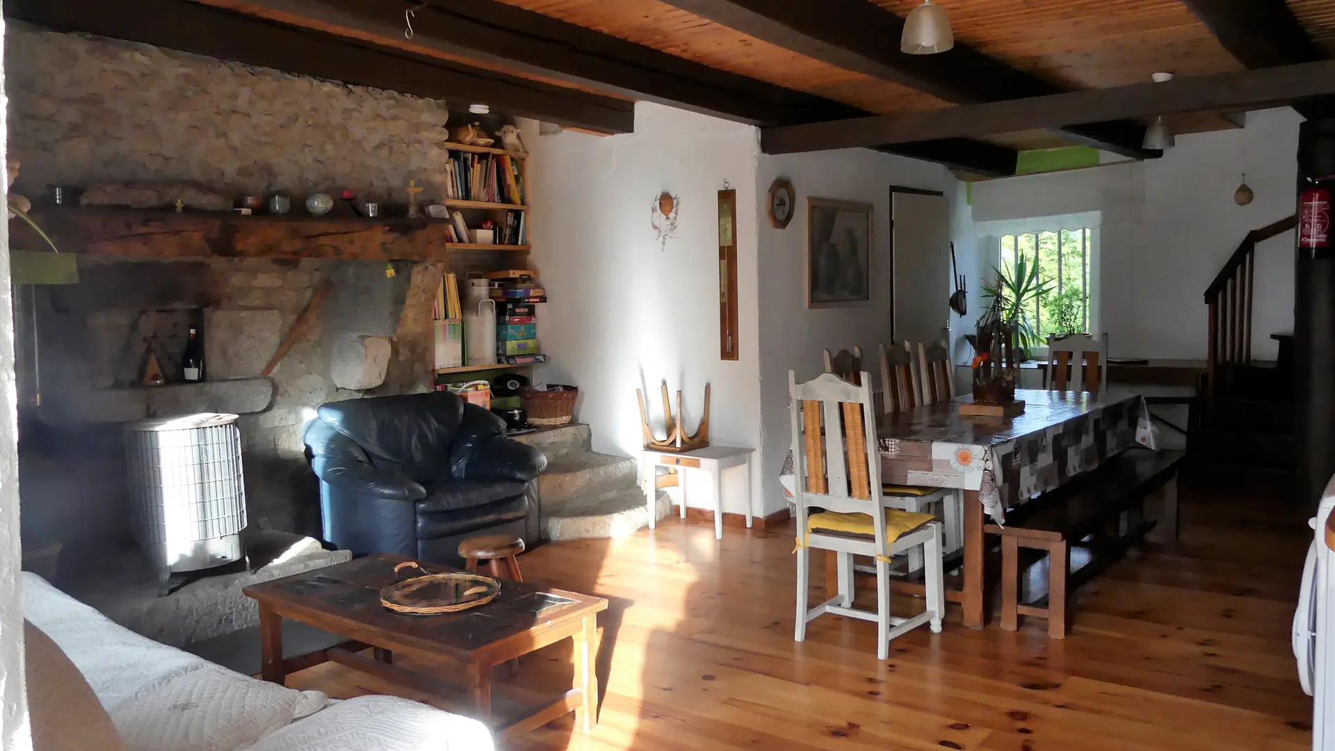 Le gîte est indépendant et mitoyen à notre habitation. La partie jour offre un grand séjour, partie détente poêle à bois et canapé, partie cuisine équipée et sdb. La partie nuit se compose d'un dortoir de 5 couchages (1 lit 140 + 3 lits 90) + une chambrette avec un lit 90.