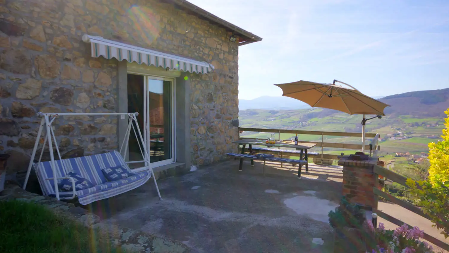 Terrasse de 30 m², orientée Sud-Ouest offrant une vue exceptionnelle sur la chaine des Alpes, le Pilat et les vergers des Coteaux du Jarez. Gîte de 75 m² sur rez de chaussée et mezzanine, salle de séjour avec coin cuisine intégrée, congélateur, 1 chambre et 1 mezzanine. Chauffage électrique. Vallée du Gier 10 Km.