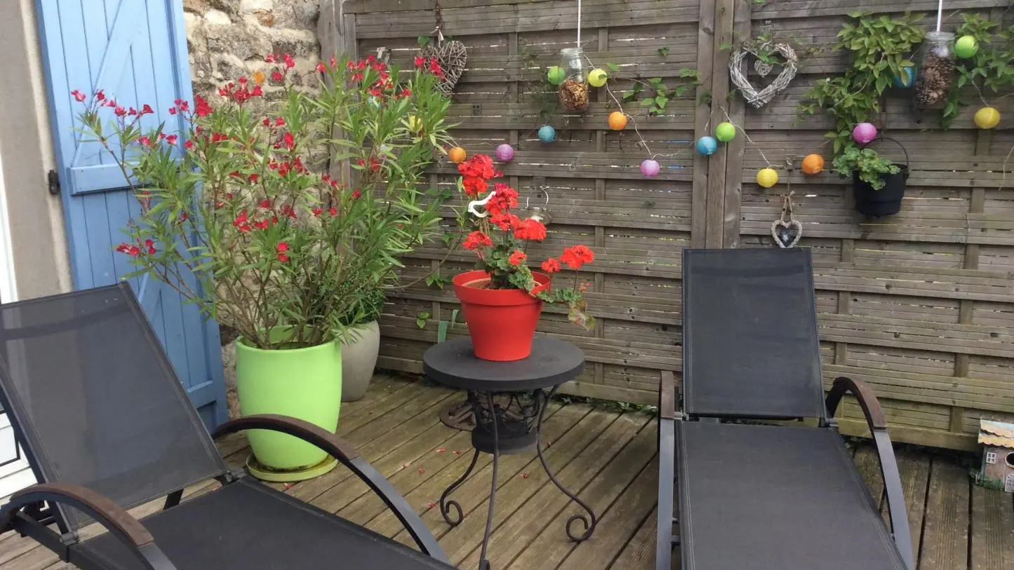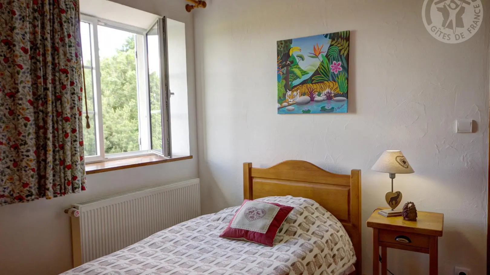 Gîte chaleureux avec bois, décoration raffinée et personnalisée par la propriétaire artiste peintre.