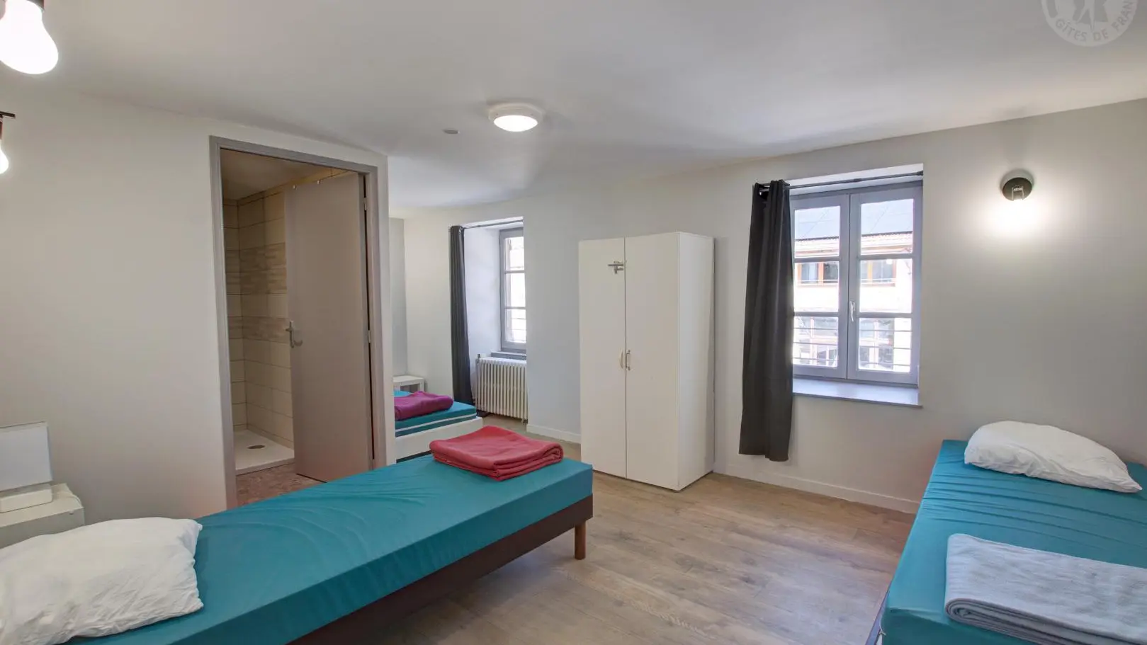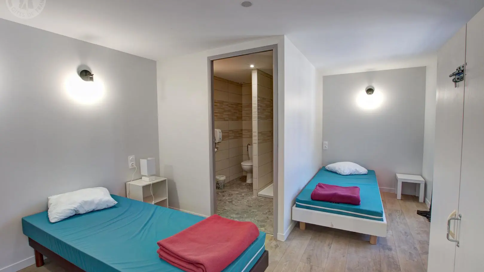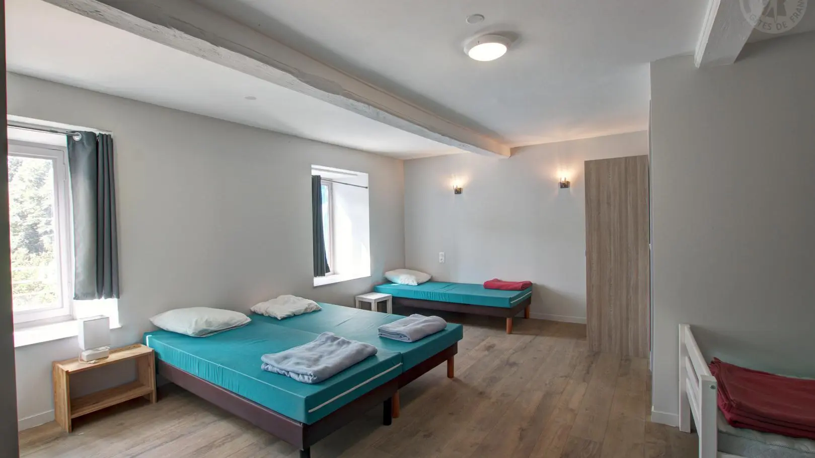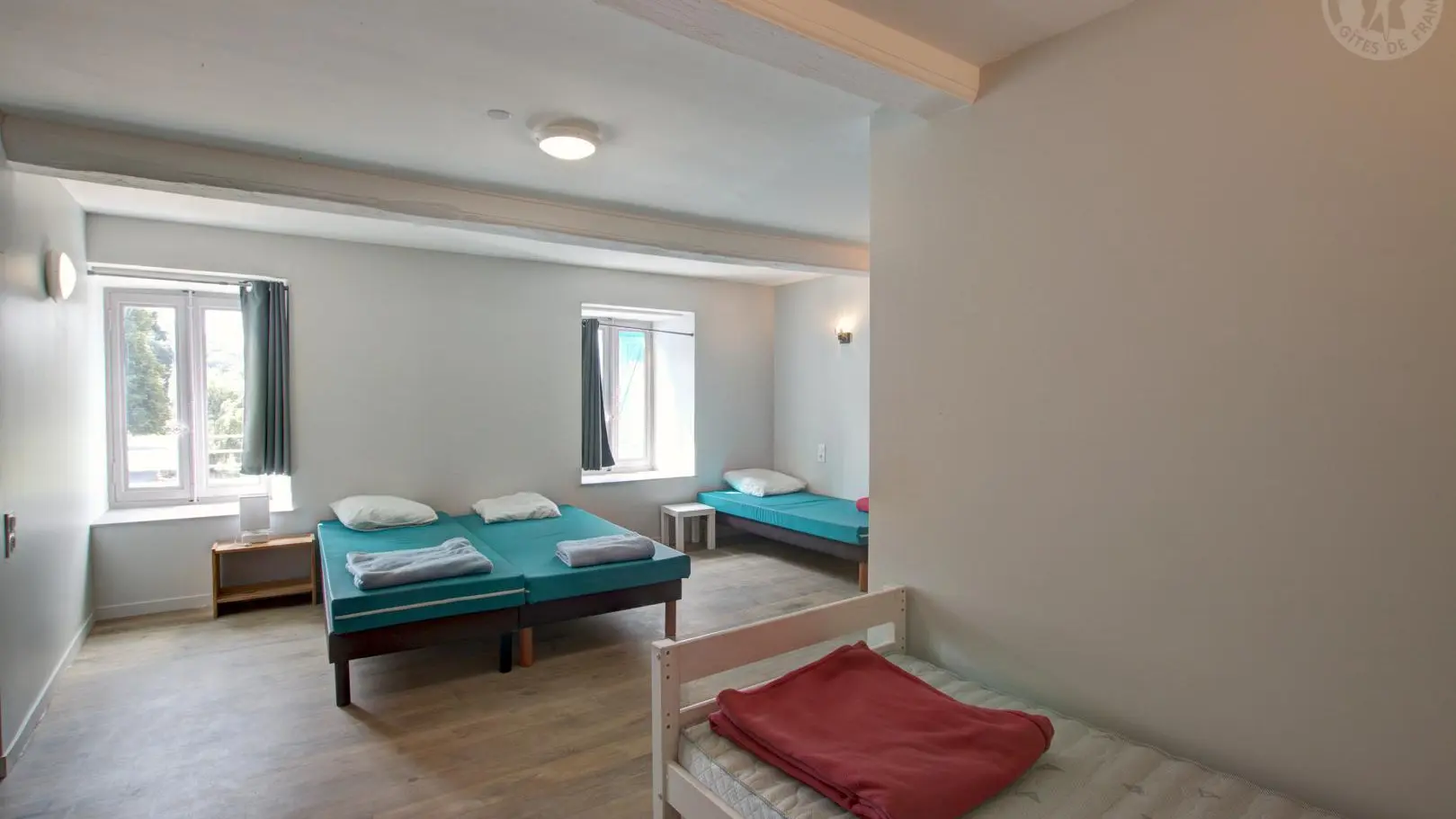 Gîte d'étape de 5 ch (2 et 3 places) avec sanitaires privatifs, situées au-dessus de l'auberge, avec coin repas et coin détente à disposition. Vous apprécierez l'accès facile, l'environnement de moyenne montagne, les balades au départ du gîte, la pêche en étang privé, la rivière sur place, les espaces de jeux et de loisirs extérieurs (boules, ping-pong, badminton), l'abri vélos...